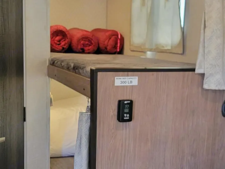 This 2021 No Boundaries 19.8 is the ultimate adventure trailer. Comfortably sleep a family of 5 and even have room for the pack-n-play!!!All Season Camping! Spring, Summer, Winter, Fall... does is all. Lightweight unit most Mid-Sized SUVs and Trucks can tow. Bunkbed for the kiddos and an upgraded queen mattress for a great night sleep. This rig can go off grid, only need for electricity is for the Air Conditioner and Microwave/Convection oven. So grab your generator or campsite hook-ups and find an adventure for the whole family. Refrigerator is huge and can run on propane or electricity. It has off-road suspension and pulls like a dream. Want to boondock? Select the super quiet generator option in the add-ons.The intirror is slightly modified from the traditional 19.8. I have installed a privacy curtain between the queen bed and the rest of the camper. Great for watching movies as the kiddos sleep. I have also removed the double bed feature of the sofa-dinet. It can still be easily used as a single bed. However, this gives much more room to move around in the camper or to add a pack-n-play for smaller children. What's includedCamp chairs , sleeping bags, fresh bedding for the queen bed, cooking supplies, outdoor games and lots of extras. Grab your food, hook up and you are on your way! Outside grill, table, weight distribution hitch are included.Pillows are not provided, please bring your own for sanitary reasons.RecommendationsThis unit is small enough to be set up anywhere, driveway, park, beach.Other things to noteNo festivals, No pets (without approval on a case by case basis). No smoking.