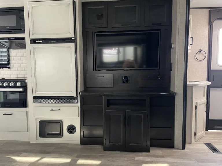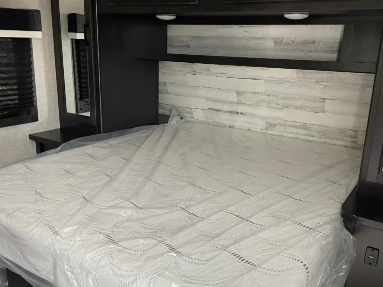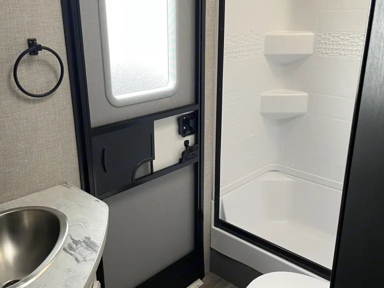 Get ready to have a fun time making memories in our modern and spacious camper. You will enjoy two entry doors, one to the bathroom and one to the main area of the camper. There is a queen bed with plenty overhead and side storage.