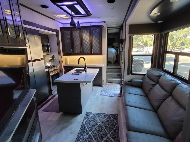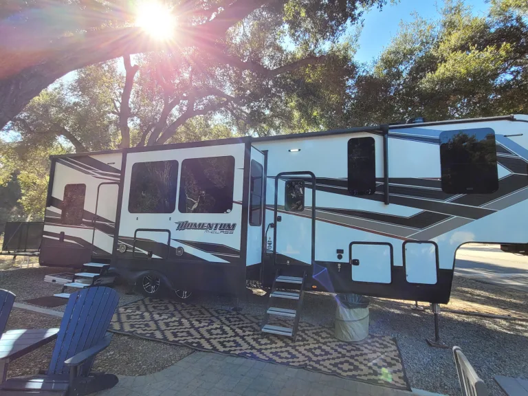 Top-of-the-line Momentum M-Class Fifth Wheel Toy Haulers are — inside and out — the most luxurious Toy Haulers. With the comfort of a master suite and master bath, home’s now a long way from your house.