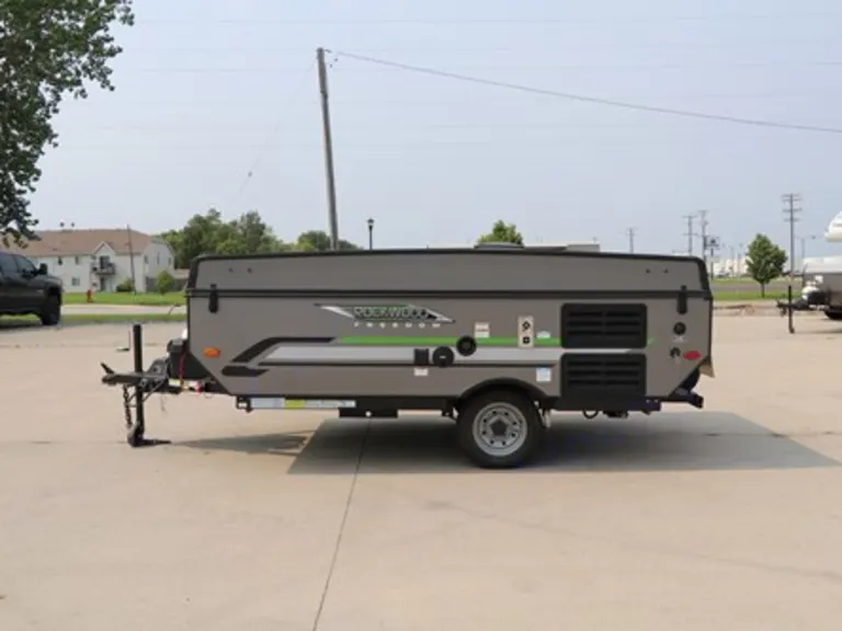 The 2022 Rockwood Freedom Series 1940LTD is a lightweight and compact pop-up camper that provides comfort and convenience for camping enthusiasts. You can make your family trips a special experience by taking them in this folding pop-up camper! With two tent end beds, you'll be able to sleep comfortably each night above ground, and you can also use the booth dinette as an additional sleeping space. The two-burner free-standing range is going to give you the ability to create delicious meals, and you can even keep some dishes or personal belongings stored away in the interior cabinets.Pickup-Time: Between 1 pm - 4 pm