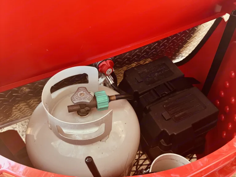 Storage under the mattress.***Please Make Sure Your Hitch TOW BAR Puts THE Center OF THE 2" Hitch Ball AT Approx. 18" OFF THE Ground FOR A Level TOW With THE Camper******The camper has 7 pin round electric connection.....but we provide adapters at no charge to go to 4 pin flat connections*****Teardrop Camper Rentals Since 2015**