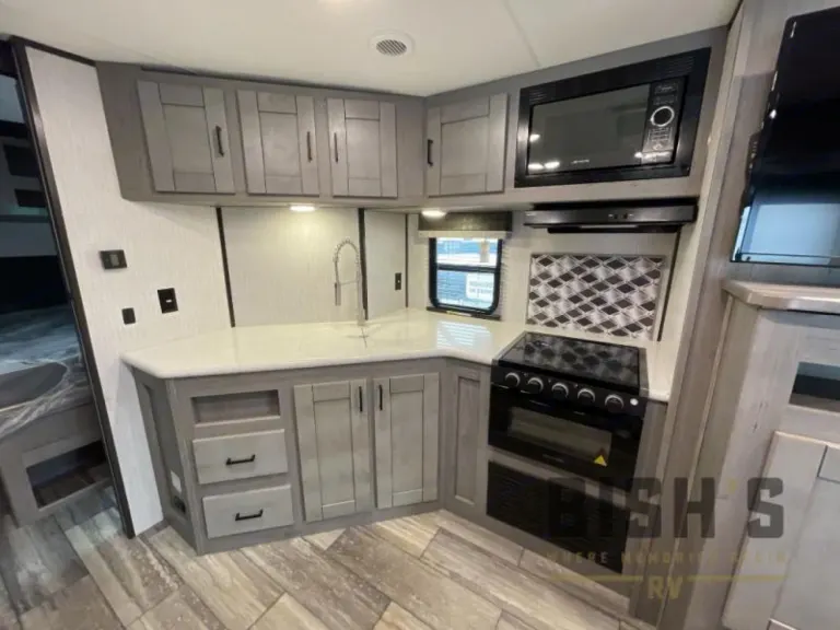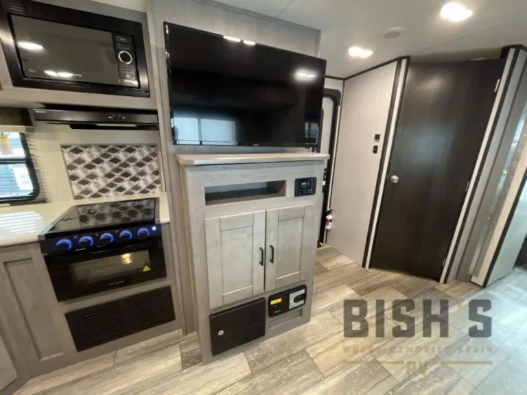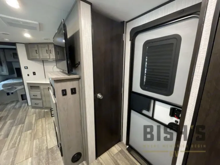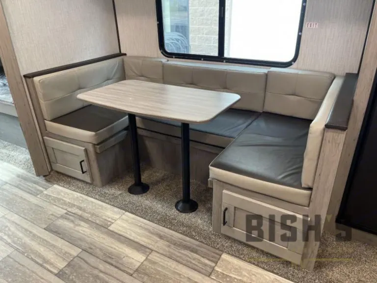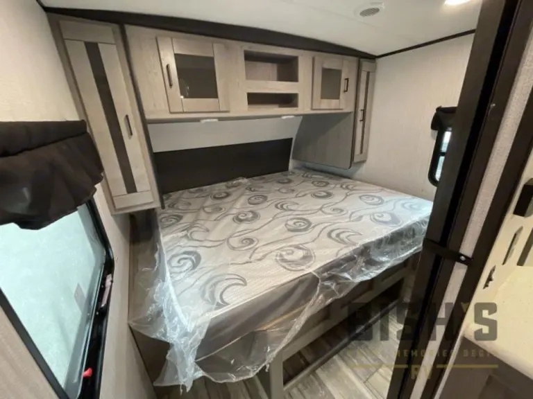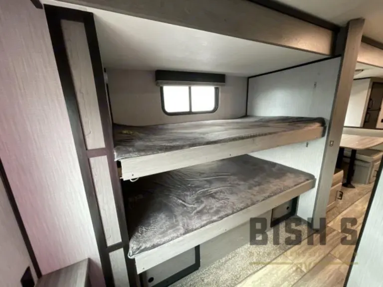 Full BathThis is a travel trailer the whole family will love! You can sleep seven to eight with the added bunk beds in the bunkhouse, the queen bed in the front bedroom, plus the U-shaped dinette within the large slide out. The chef of the family can prepare meals on the three burner cooktop or use the microwave oven. There is plenty of counter space to prep fresh veggies, and the walk-in pantry can store paper goods and snacks. This model also includes a 18' electric awning with LED lights and outside speakers that will allow you to be the life of any party!Enjoy open living spaces and comfortable at-home features. Inside, you will find a high rise kitchen faucet, infinity edge countertops, upgraded and overstuffed residential furniture, plus residential interior doors to make you feel right at home. Each unit is constructed with Azdel fortified sidewalls with "stay cool technology", a heated and enclosed underbelly. Outside, you'll find four stabilizer jacks for easy set-up and slam latch baggage doors.What's includedFully stocked with fresh linens, towels, utensils, campfire roasting sticks, and camp chairs. Included appliances are microwave, fridge, freezer, oven, stove top, coffee maker. All you need to bring is yourselves, clothes, food, and a good time!Please note the electric generator cannot be stored on board and must be hauled in a separate vehicle.RecommendationsNearby are lots of parks and recreational areas!Other things to noteSmoking is prohibited. Waste tanks must be emptied prior to return. A $250 fine will be imposed for noncompliance.