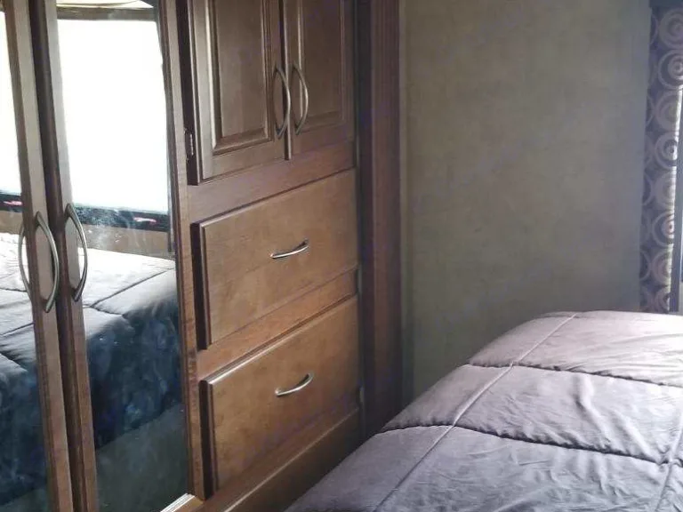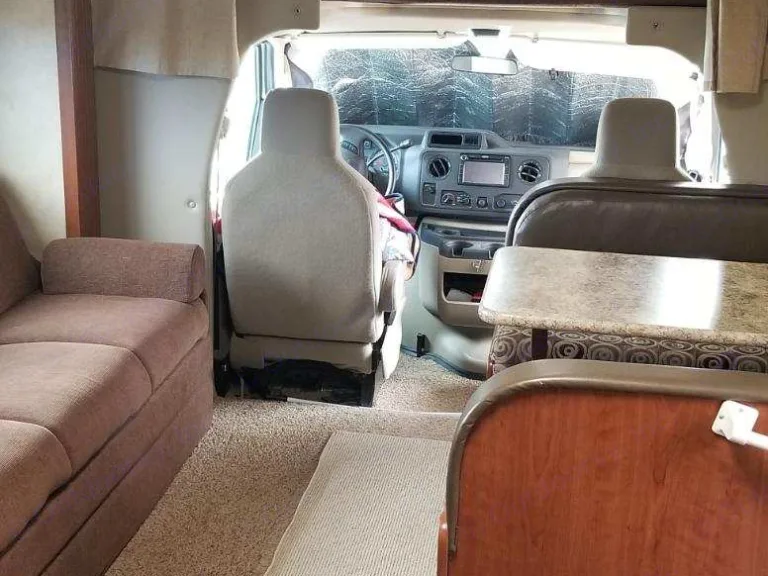 This is a great class C RV at 31 feet long it has two slide outs and is capable of sleeping 8-10. It has a queen size bed in the back, two bunks in the hallway, a queen size cab over sleeper, couch and table that are able to be transformed into beds. It has all the amenities; refrigerator/freezer, oven, stove top, TVs, heater and air conditioner and microwave.