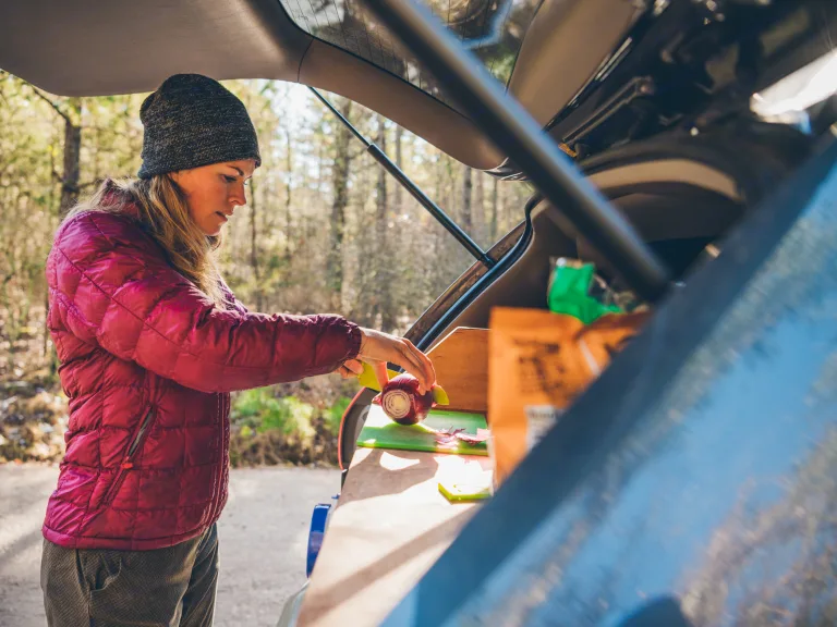 • Two-burner stove and a starter bottle of propane, with matches and lighter