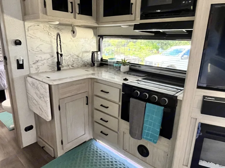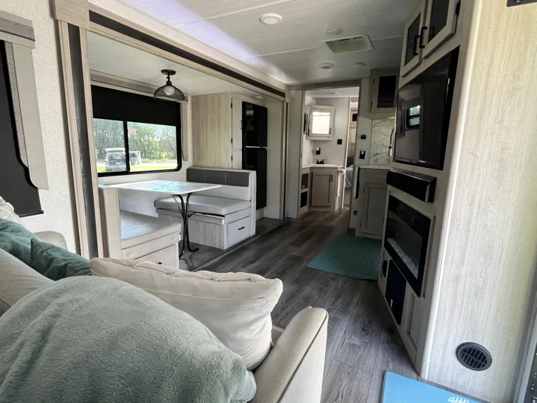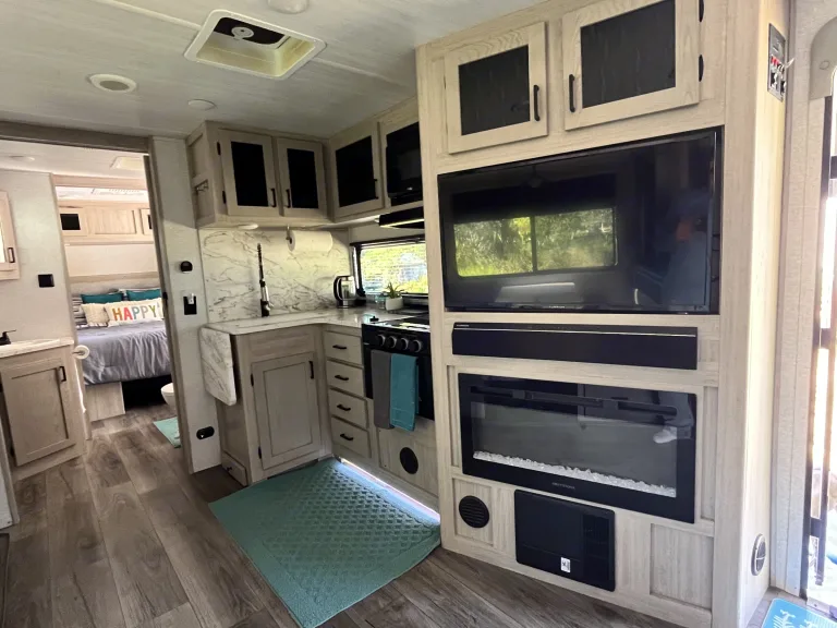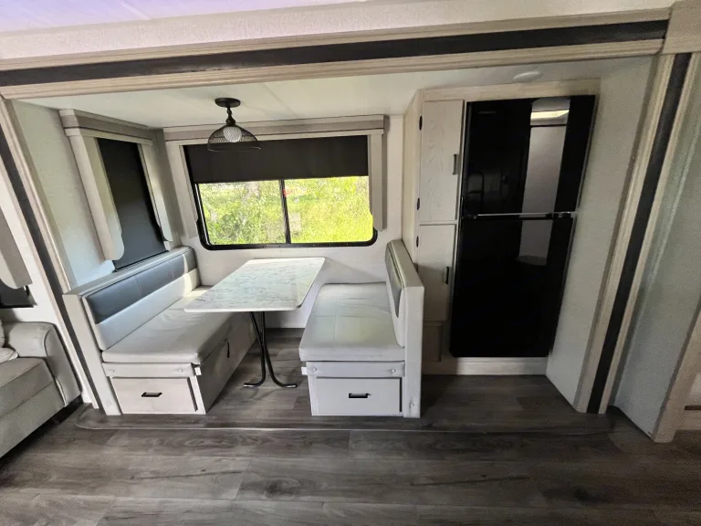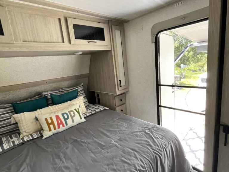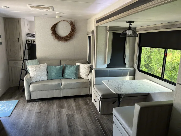 Ms Jewelz is ready for your Glamping Weekend at Long Point, Disney, the Keys or even as an extra room for your In-laws. She is fully equipped for the Whole family including the Fur Babies. She sleeps 8 with her huge twin Bunks, fold out sofa, convertible dinette, and her queen size bed. Her fridge is ready to be stocked for an entire week and you have more than enough room in her oversized shower and bathroom. Enjoy the shade under her 20' awning and breeze that flows through her 2 screen doors. She is ready for you!What's includedShe comes fully loaded with freshly cleaned sheets, towels, pillow, cooking utensils, coffee maker and the sorts. All you need to bring is your favorite coffee, food, beverages, and toiletries. She is stocked with TP, Paper towels, Dish soap. Her fridge is cold, the AC chills, the water heater is ready and her awning provides all the shade you need. RecommendationsShe's perfect for us to deliver to any of the RV parks in Brevard or Indian River County such as Long Point, Sebastian Inlet, Wickham Park, Ronald McDonald or Vero Beach Kamp, or if your able, you can tow her to Disney, The Keys, any of the Springs in Florida, Daytona, Homestead, Sebring, or any destination in FL you'd like.Other things to noteStandard Rules Apply: No Mud Bogs events (this includes ANY event a Plant Bamboo or the Mud Bog Events at River Ranch), no Music Festivals (unless approved first) No Smoking, vaping inside, Dogs allowed but no Cats. Please reach out to us before requesting to tow the unit as we need to ensure all will work. In state travels only!