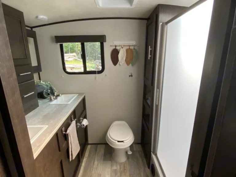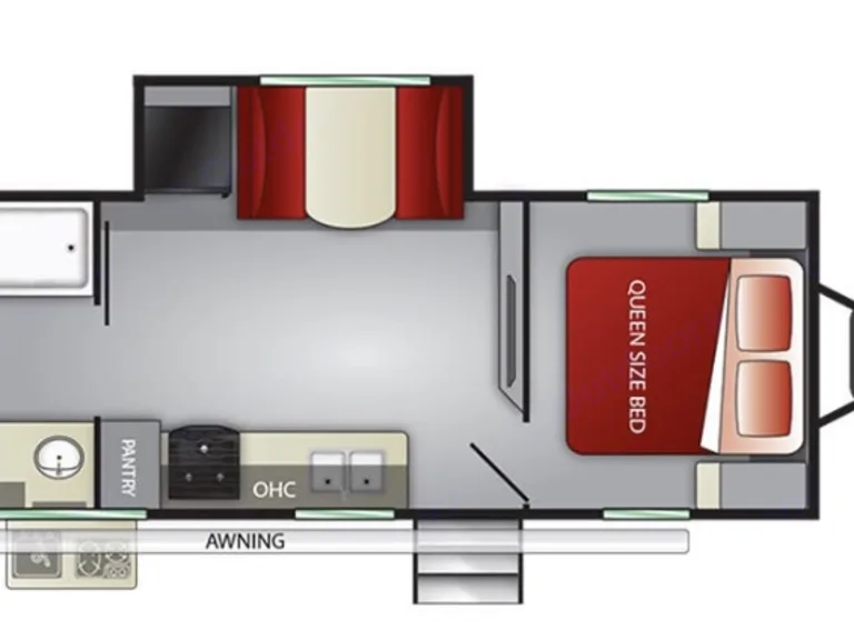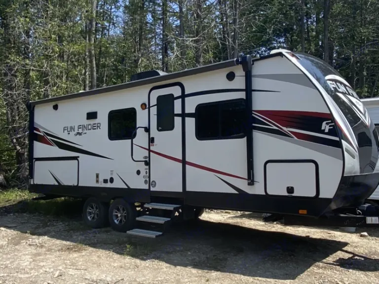 Welcome to the Fun Finder!This trailer is equipped with One Queen Bed along with a fold down dinette for a 3rd person or even two small kids.Rear of trailer is the whole bathroom. Double Vanity, large shower with skylight. Lots of room for moving.Outdoor Kitchen with stovetop - sink - fridgeKitchen indoors: Microwave - oven - three burner stovetop - large deep stainless sink. Lots of storage for food with a medium size pantry. Kitchen is equipped with basic kitchen utensils, dishes, pots/pans, cups, etc.Tv with dvd input for rainy days