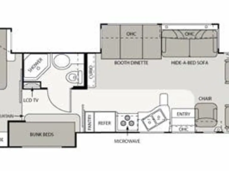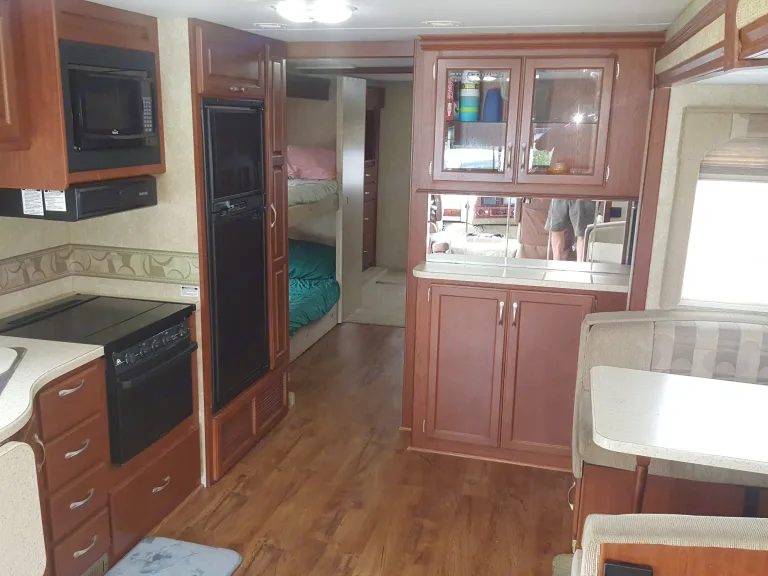 This is a 34 ft bunkhouse that sleeps 8 people easily. Clean, Sleeps a lot and has 3 slide outs. Brand new flooring and couch. Everything you need is included just bring your luggage, food, and head out for your funtastic trip! No special license needed.