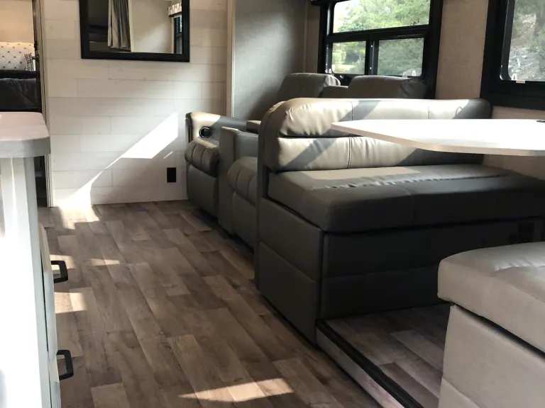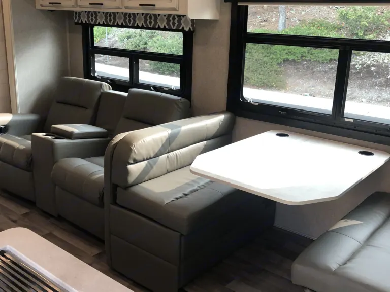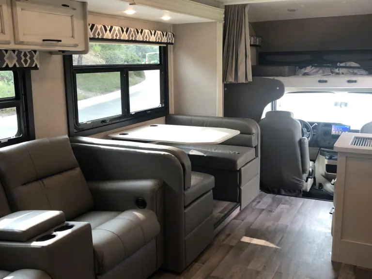 Be one of the first families to "glamp" in this brand new luxury 2021 C class with 2 pop-outs, fireplace, 50” Smart TV with Apple, Wi-Fi, theater seats, DirecTV, banquet dining, TV in bedroom with queen bed and fully equipped kitchen.Top of the line modern farmhouse interior. Sleeps 6 with separate bedroom and over cabin queen bunk and banquet bed conversion. Awning with led lights and outdoor blue-tooth speakers.100 miles per day, flexible pickup/drop off, delivery and set up available.Included with rental: cooking utensils, 4 piece dish set & cups, silverware, knives, cutting board, cafeteria, frying pans, pots, cookie sheet, RV toilet paper and paper towels.We also have, for an additional fee - bike rack, camp chairs, gravity chairs, tables, mat, BBQ, firepit, etc.Other things to note$100 cleaning fee applies to all rentals.