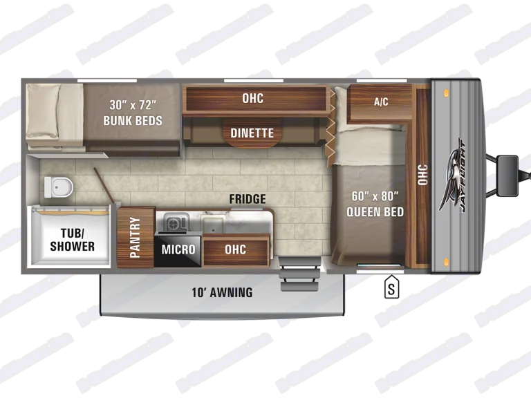 This 2021 Jay Flight 174BH by Jayco has a total length of 21.8'.