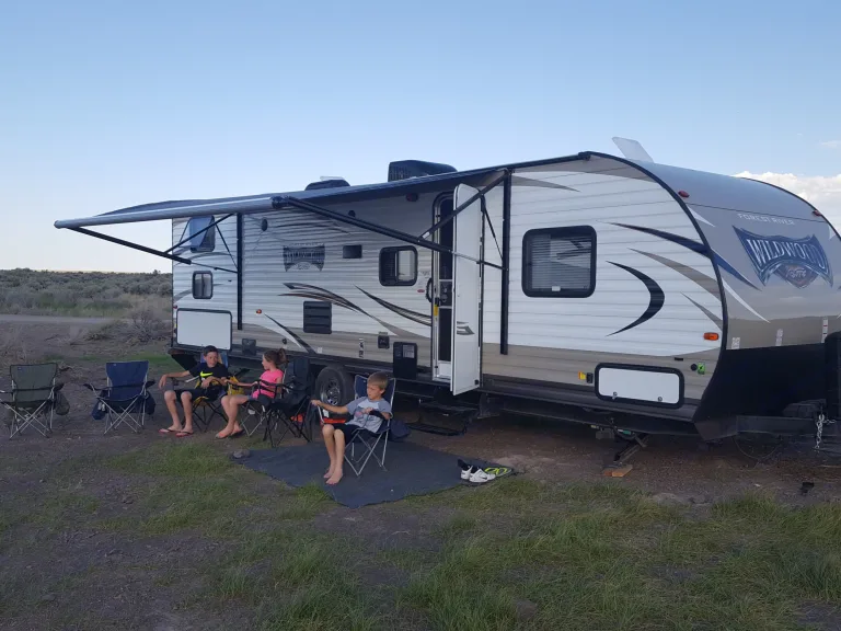 Enjoy traveling and camping in our Forest River Wildwood bunkroom bumper-pull camp trailer! Experience the ultimate weekend away from home by pulling the comforts of home behind you. This is the X-Lite model (5956 lbs. w/680 lb. hitch weight) so you can tow it with your 1/2 ton pickup or full-sized SUV (we use our 1/2 ton Suburban). The awesome part about traveling with a trailer is that you can set up camp and then travel around seeing the sights in your tow vehicle. We are located in South Central Idaho and within a day's drive of Yellowstone and Sun Valley (and a long day's drive from Disneyland!). We are also just over an hour from the world famous City of Rocks National Reserve and Castle Rocks State Park.Our Wildwood sleeps 9-10 (4 kids in the bunkroom, 2 adults on the dinette bed, 1 adult or 2 kids on the fold-out sofa, and 2 adults in the walk-around master suite). There is a super slide-out for more space when parked (living and dining room). Privacy doors divide the master bedroom from the rest of the trailer. Our Wildwood is brand new and clean. Everything is simple to operate and works smoothly: kitchen with everything needed for food prep, microwave, oven and cooktop, freezer/fridge, full-size sink, shower with hot water, outdoor shower with hot water, thermostat, ducted furnace, and ducted A/C. There is plenty of cabinet space and storage. The living room has an HD TV with an HD antennae and DVD player/radio. Enjoy outdoor comforts with our power awning, led lights, external speakers, and a full slide-out kitchen, complete with sink, fridge, and barbecue grill. Hooking/setting up is effortless with power stabilizers, a power tongue jack, and our included hitch and equalizer setup for your towing vehicle (you must have a 2" receiver hitch, 7-way trailer plug and brake controller already preinstalled on your towing vehicle).Our Wildwood is 27' long which will allow you to stay in most parks and campgrounds. We have an instruction manual that will help you operate all of the features if you're not familiar with RVing. We love RVing and enjoy sharing our home-away-from-home with others. We will include a portable generator that will run everything including the A/C when camping without full hookups. When returning, we'll clean everything and dump the tanks for you for $75 from your deposit, or you can do it yourself and waive the fee. We will deliver and pickup for an additional fee if needed ($1/mile). Give us a call or text with any specific questio