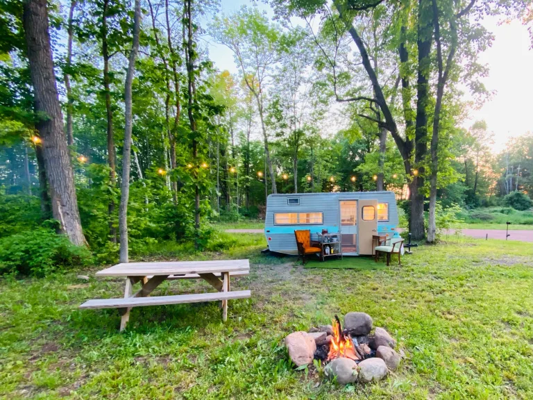 1970s Vintage Camper RentalThis one of a kind camper has been completely renovated and is ready to welcome campers!Stella Rose is stationary at a family owned campground located just 1.5hrs north of the twin cities at Banning RV Park & Campground. You don’t have to haul it or set it up. All you have to do is book it and show up ready to camp!Pet Friendly with a 2 pet max, $25 pet fee and $100 damage deposit.This camper cannot be hauled to another location. It is at a permanent campground spot for campers to come and enjoy! What's includedStella Rose contains the following for campers to use and enjoy during their vintage experience. Plates, bowls, silverware, 1 pot, 1 pan, cooking utensils, knifes, cutting board, measuring cups and spoons, hot pads, coffee pot, coffee mugs, dish drying rack, dish soap, aluminum foil, trash bags, paper towels, broom & pan, and boards games.There is no bathroom but is parked on a site near the bathroom and shower facilities. There is electricity and running water.There will be outdoor lights hung, a picnic table and outdoor furniture to use. Along with a fire pit for campfires.Please make sure to bring your own bedding, pillows, blankets, any cooking supplies, toiletries, and any other camping necessities.RecommendationsFuel, Live Bait, Restaurant and Bar, Off-Sale Beer and Liquor