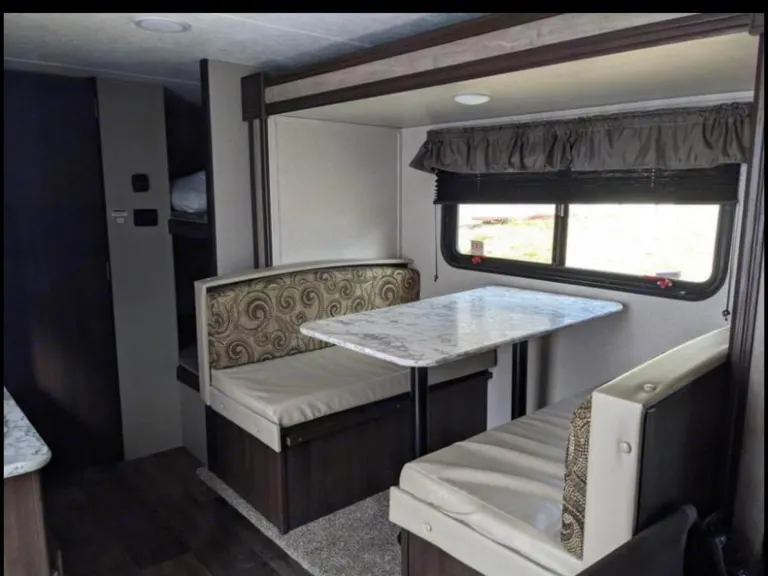Your next adventure starts here!! Bunkhouse travel trailer that will accommodate 5. This is a budget and family friendly camping experience. This has a slide-out for the dinette to have extra room along with a 6cu ft refrigerator to keep all your items cold. This RV can be pulled with a mid size SUV, full suv or pickup It does have rooftop AC to keep you cool on those hot summer days. Has awning with led lighting along with bluetooth radio. Enjoy and happy camping!. Setup and delivery is available if needed. Please supply own linens as everyone likes their own pillow:) . Required 3 nights but if only need 2 let me know. Thanks in advance and happy camping.What's includedAnti sway hitch with ball