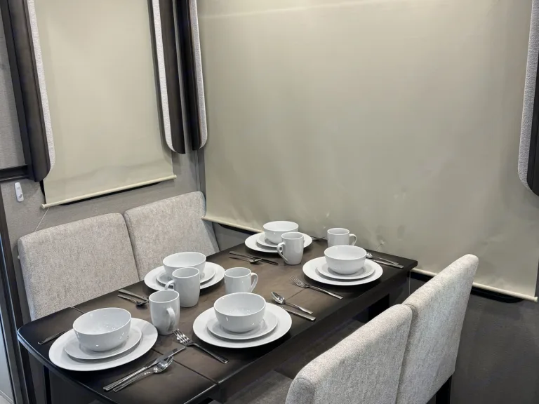 • Approved campsites only and full-hookups are preferred. This is a 40ft luxury rig and the experience will be improved if you have shore power and water.