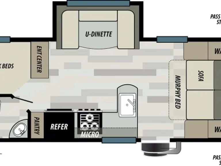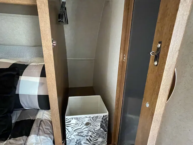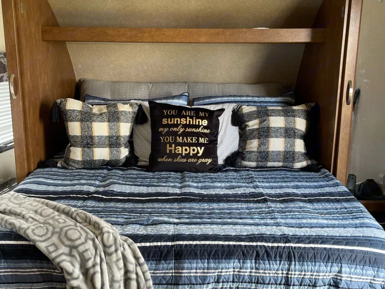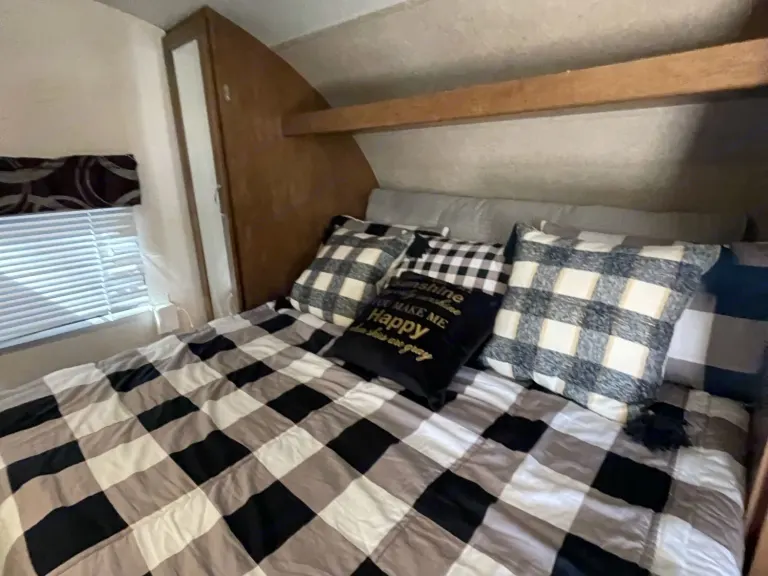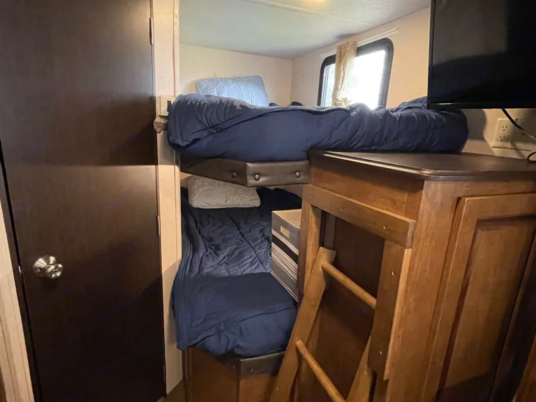 We love the outdoors and with our travel trailer the adventures are endless. Our travel trailer is fully equipped for comfort.What's includedThe trailer features two full-sized bunk beds, a queen-sized murphy bed, and a kitchen table that converts to a full-sized bed. Kitchen features a large refrigerator, freezer, microwave, oven, and gas stove. It has a fully stocked kitchen with all the essentials needed for prepping meals. The bathroom has a stand-up shower, bathtub, and sink. Bathroom is stocked with towels. Trailer comes with an outside awning that allows for shade on hot days. Trailer also comes with indoor and outdoor bluetooth capability speakers. It comes with an additional outdoor shower that allows for easy cleanup. It is equipped with an AC and heater unit. This rental also comes with an outdoor table and folding chairs to make for a pleasant camping experience.