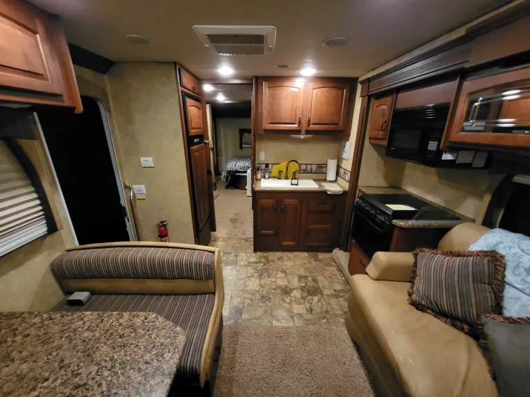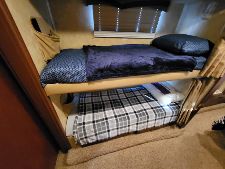 The Appalachian Express is an easy to drive 2011 Jayco Greyhawk and gives you the perfect camping experience. This 32 foot RV with 6 different beds, lots of storage, and fully stocked gives you everything you need to enjoy a comfortable and mobile getaway! Two slide outs give you ample room and have fun sleeping on the queen in the private master area with your own TV and Blu-ray player. Two bunk beds (each with a small TV/DVD player allows for quiet enjoyment of movies with plenty of headphones. In the main living area there is a sofa conversion bed, a dinette that converts into a bed, and a bed over the cab. These three beds enjoy a TV and Blu-ray. Included in the rental is a binder with over 200 movies and shows if there is no internet connection. If you have internet, the Blu-ray players are smart and allow for logins to your favorite apps (Vudu, Netflix etc.).This rig is jam packed with all the amenities. An inverter generator can be provided that powers the whole camper if you aren't staying at a campground, and a fully stocked kitchen allows you to cook your favorite dishes. When you rent the Appalachian Express, you have everything you need to camp including 4 camping chairs, a small outdoor propane grill, a folding table, outdoor rug, and all linens are included!The kitchen has all you need to enjoy savory, homecooked meals. An oven, 3 burner stove, microwave, and K-Cup ready coffee maker!The spacious bathroom has a comfortable toilet and shower with towels included in the rental.This 32 foot class C with a Ford Triton V10 gas engine is easy to drive and you can enjoy movies while you hit the open road!What's includedIncluded: