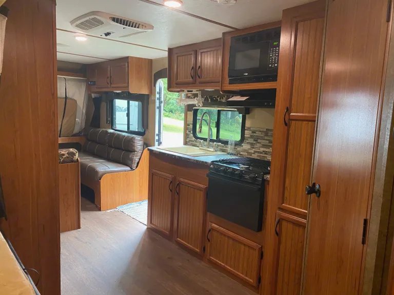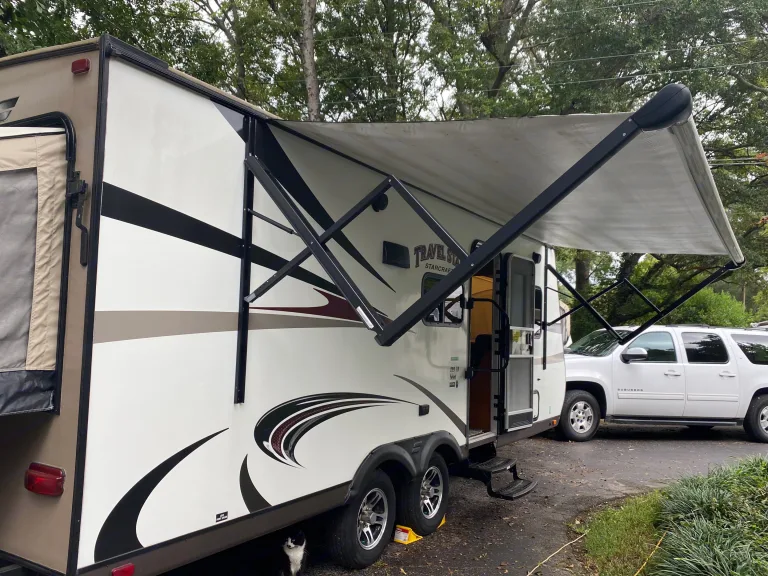 Youll also find plenty of room in the storage compartment below. It also features a power awning with LED light bar, two exterior marine-grade stereo speakers, a two step lighted entry, a twenty-four inch grab handle makes getting in and out of this coach so much easier. It also features two exterior AC outlets, aluminum wheels, and four stabilizer jacks.What's includedTell us what you need and we will try to accommodate you Other things to noteNO PETS and NO SMOKING OF ANY SUBSTANCE!