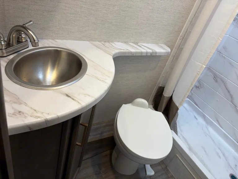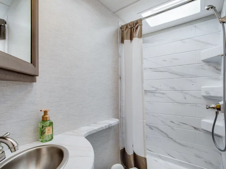 Enjoy a private queen suite, on-demand hot water, and a full kitchen.