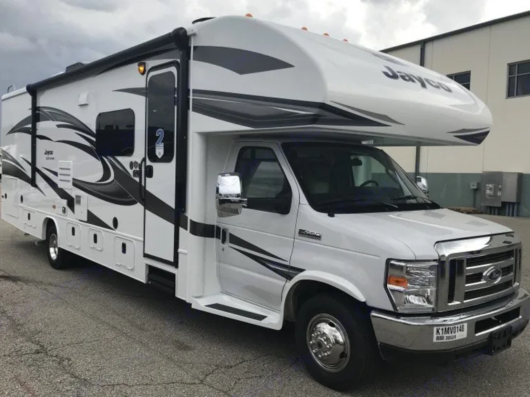 Take this beautiful, brand new Class C Jayco Greyhawk out on the open road for the trip of a lifetime. Imagine the memories you can make while exploring in an RV and also enjoying all the amenities of home! This very clean and well maintained coach boasts a large slide-out, beautiful vinyl flooring, and leather furnishings with lovely woodwork and lighting. There is plenty of sleeping room with a queen walk around bed, sleeper sofa, sleeper dinette and sleeper loft. The unit also has 2 new TVs, DVD player, DirecTV Satellite, a fully stocked kitchen (utensils, plates, cups, spices, everything!!!), Kuerig with pods, refrigerator/freezer, 3 burner cook top, microwave, U-shaped dining table area, beautiful bathroom, rear camera, side cameras, lots of storage room, and a large awning. We also include camping chairs for outside, outdoor rug, Blackstone griddle, and campfire tools for roasting marshmallows and such. Brand new linen package for the master bedroom with every rental. You will not need to buy anything for this rental except for your food and drinks.