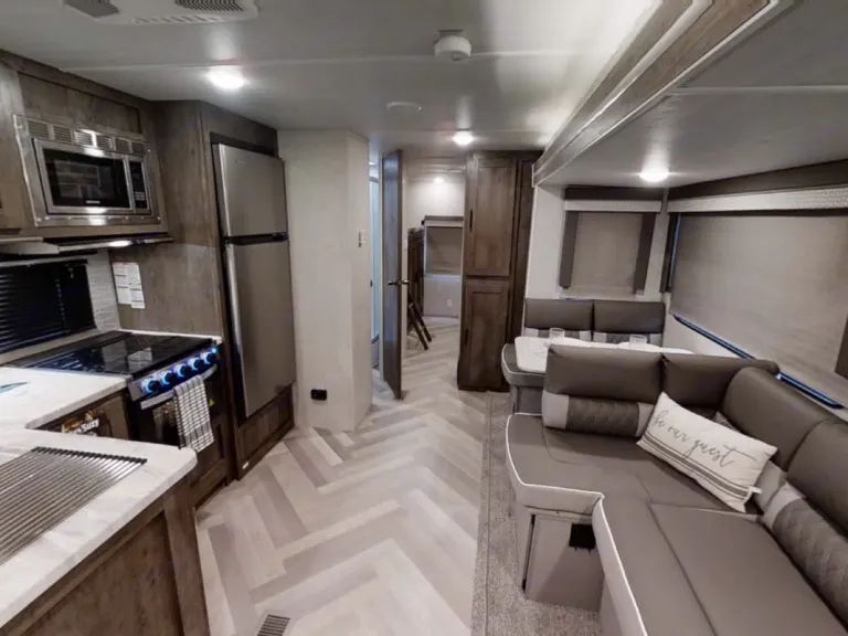 Length - 38' 9"What's includedFresh linens and towels, indoor and outdoor blankets, camping chairs, cornhole, cards / games, cookware (indoor and outdoor), kettle, utensils, dishware, delivery / pickup available, air conditioning / heating, outdoor kitchen, gas grill, Keurig coffee maker, small outdoor table, roasting sticks, first aid supplies, hair dryer, outdoor area rug, pet friendly (additional fees apply), cleaning supplies, delivery and pickup (additional fees apply)Must be 25 years old to rent. Absolutely NO smoking (forfeit of entire deposit). Festivals and tailgating allowed on a “by approval” basis. Pickup and drop off times can be negotiated prior to booking. Renter MUST include exterior AND interior insurance for their rental.Other things to notePet Friendly (2 dog max, no cats or exotic pets), Family Friendly, Delivery / Setup + Pickup Only (Entrance Fees for delivery / pickup are additional), No Festivals, No Tailgating, No Smoking (Forfeit of Deposit if You Smoke in the RV), Must Dump Tanks Before Return or Dumping Fee Applies, for towing rentals 100 miles per day included (miles DO NOT roll over to the next day) and $1 per mile charged over the 100 per day.