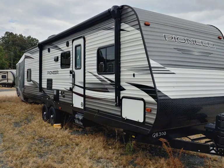 2019 Heartlan Pioneer. It is 34 feet, 1 slideout, sleeps 8, has a stove, oven, microwave, and kitchen sink. Bathroom has a shower, sink, toilet. The trailer also has AC and heat. Runs off electricity or propane ( has 2 propane tanks). It is a fun trailer.