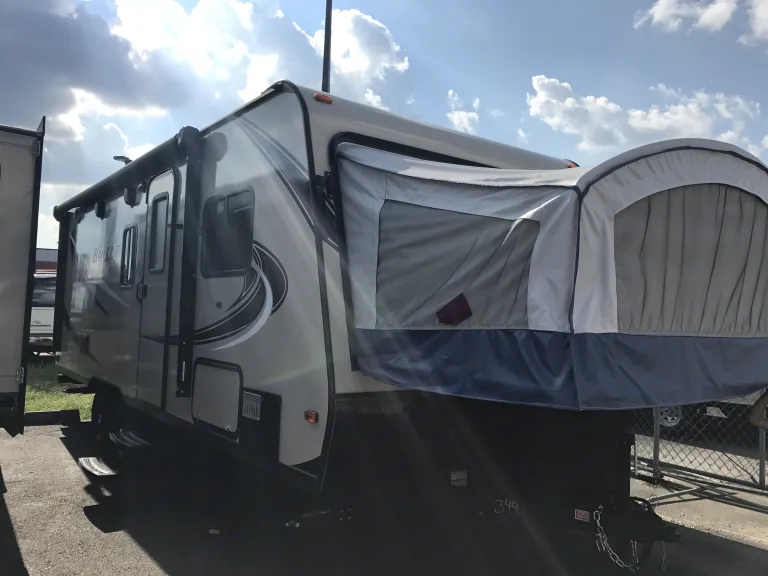 Brand new condition. Hybrid. Sleeps 10. 3 bunk ends, U shaped dinette, jackknife couch, sink, refrigerator, freezer, stove top, microwave, bathroom with tub/shower.Lots of sleeping room with less weight to pull than a standard trailer.