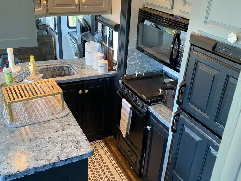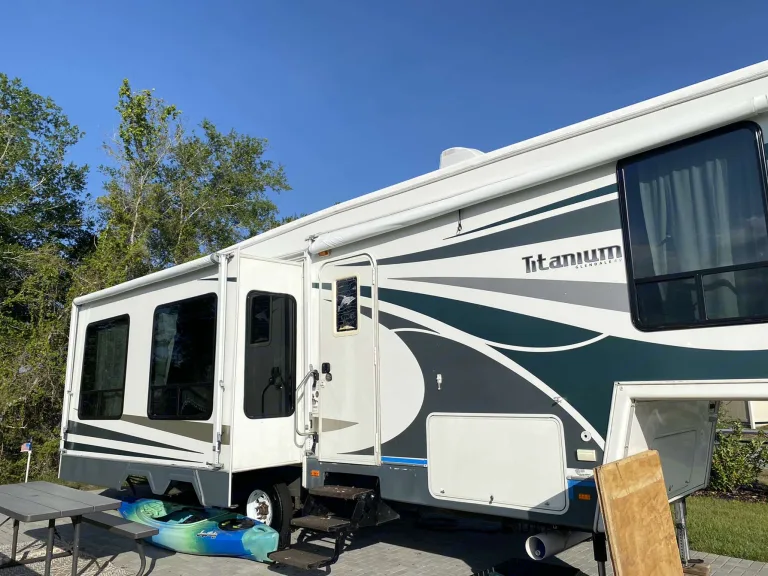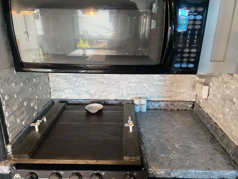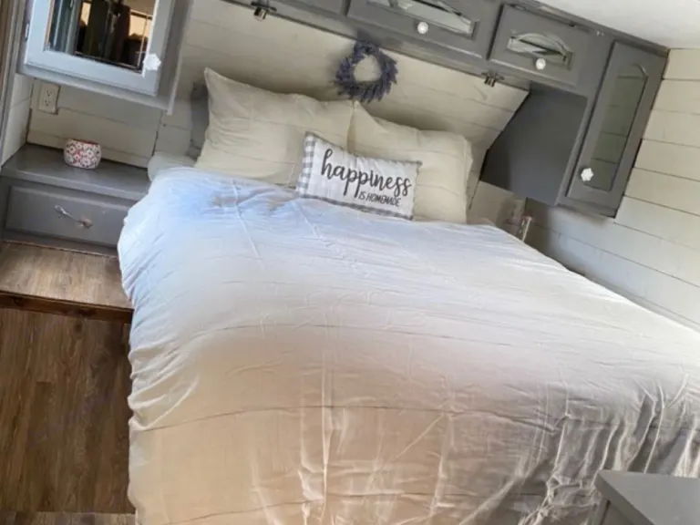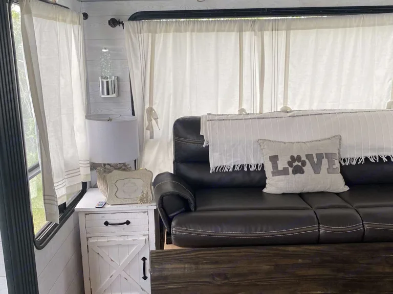 Feel right at home with this beautifully renovated rv 5th wheel! With 4 slide outs, there’s plenty of room for you and your furry friends. Stay inside and cook a nice family dinner or feel free to put out the 2 awnings and cook or bonfire with the provided camping kit! What's included2 X Camping chairs, camping kit, charcoal grillOther things to noteNo smoking