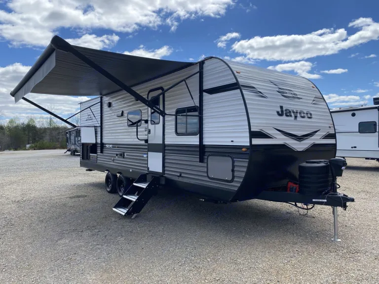 Adventure-Ready 31' Jayco Flight SLX – Family-Friendly Comfort on Wheels!Looking for the perfect home-away-from-home for your next road trip or camping adventure? Look no further than our 31’ Jayco Flight SLX – a spacious, modern, and fully-equipped travel trailer designed for comfort, convenience, and unforgettable memories.Sleeps up to 6 adults ComfortablyWith a smart layout and cozy sleeping arrangements, our Jayco Flight SLX easily accommodates up to 8 guests, making it ideal for families, friends, or couples looking to spread out and relax.Private master bedroom with a queen bedDouble-over-double bunks perfect for kids or adultsConvertible dinette and jackknife sofa for extra sleeping spaceFully-Equipped KitchenEnjoy meals just like at home with a kitchen that includes:3-burner stove & ovenMicrowaveLarge refrigerator & freezerDouble sinkPantry and plenty of storageAll essential cookware, utensils, and dinnerware provided!Bathroom AmenitiesThe full bathroom includes a shower/tub combo, toilet, and sink with vanity — great for families with young kids. Tankless hot water heater and generous freshwater tank capacity ensure you’re covered even off-grid.Comfort in Any WeatherStay cool in the summer and cozy in cooler weather with:Powerful A/C and furnaceInsulated wallsBlackout window shades for restful sleepOutdoor Fun & FeaturesTake your adventure outside with:Power awning with LED lights for shaded loungingOutdoor speakers to enjoy your favorite musicExterior storage compartments for camping gear, chairs, and coolersBlackstone ( Flattop with side burner) provided.Delivery & Setup AvailableDon’t have a tow vehicle? No problem! We offer delivery, setup, and pickup services within a reasonable radius. Just show up and start enjoying your getaway.Additional FeaturesLightweight for a 31’ trailer (approx. 7,000 lbs dry weight)Dual propane tanksStabilizer jacks for a level, secure setupTV (32")Starlink (If selected)Requirements & Notes:Tow vehicle must have a brake controller and suitable tow capacity if towingNo smoking inside the trailerNo frying / searing / sautéing in camper. A Blackstone is provided for cooking outdoors.Standard cleaning is included with rental. Guests are asked to please lightly rinse dirty dishes and leave in sink. All food / drinks / trash need to be disposed off before drop off / pick up.Don’t want to clean?? No worries, upgraded cleaning fees are available at checkout!!Flexible pickup/drop-off times – we’ll work with your schedule!Whether you're headed to the mountains, the beach, a national park, or just want a weekend escape in nature, our Jayco Flight SLX has everything you need for a comfortable, memorable trip.Book now and let the adventure begin!What's included• Our unit comes ready for your enjoyment!