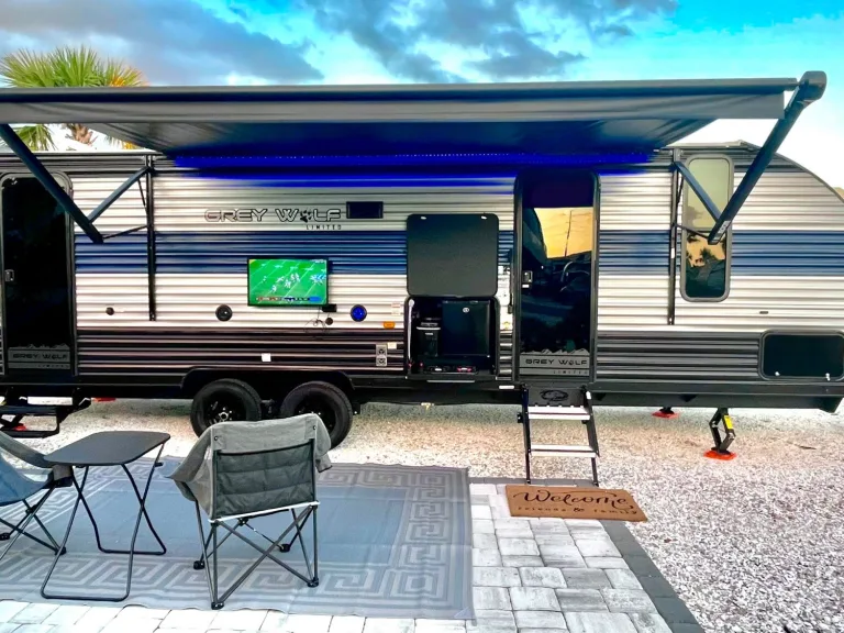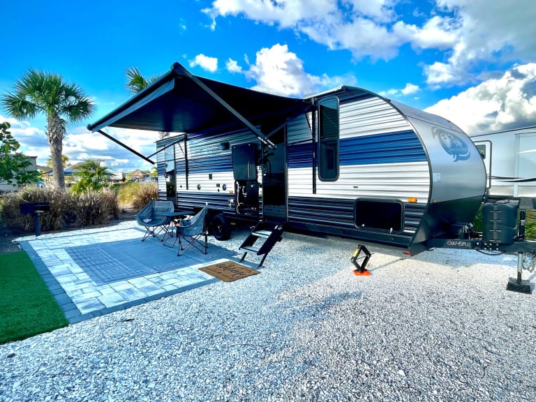 couldn't be happier with the experience. everything went smoothly. We had a beautiful RV delivered and setup at Sebastian Inlet State Park. I arrived shortly after the host got everything setup, and they were chilling under the canopy in the camp chairs all set up. the RV perfectly leveled, very clean, hooked up and well on its way getting cooled down. They were very easy going, not rushed and gave a thorough tour and explanation of all functions of the RV. Was well furnished and had everything needed, including a small slideout kitchen w/ twin propane burners, small fridge for water bottles and an ice maker. I can't wait to book next year and hope to get same RV and hosts. We even enjoyed the simulated fireplace while we had cocktails inside one evening when the weather got iffy. Thanks much Tom and Brittany!