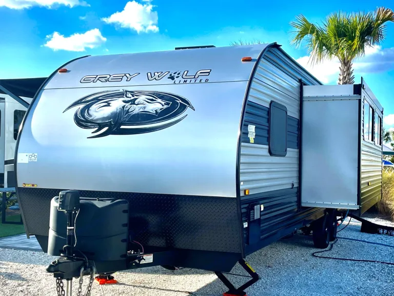 Stay 3 nights, get the 4th night on us! Use code BUY3GET1 at checkout! (Code is only valid when you reserve for 4 nights!)2022 Grey Wolf Travel Trailer Sleeps 10!! Is fully equipped with comfortable beds, a kitchenette, bathroom, and all the essentials for a cozy and enjoyable stay. We provide outdoor seating, outdoor gas stove, games and activities for you to enjoy during your camping trip.Whether you're looking for a relaxing weekend getaway or a fun-filled adventure with your loved ones, our Glamping experience is the perfect choice for you. Say goodbye to the hassle of packing and setting up your own camping gear and let us take care of everything for you.So why wait? Book your Glamping experience with us today and let us help you create memories that will last a lifetime. We can't wait to welcome you to our small business and provide you with an unforgettable camping experience like no other.About THE RIG & Whats Included: