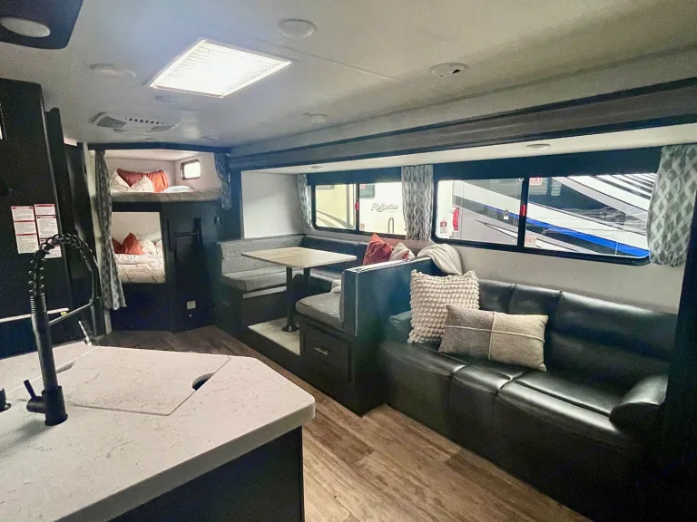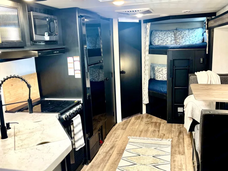 • Garbage bags, Ziplock bags, and hygiene products.If you have any questions or concerns about this camper please message us, we'd be happy to answer any additional questions you may have!Other things to note🚭NO smoking allowed! 🚫Any signs of smoking inside the camper will result a $200 fee deducted from security deposit.**NO pets allowed on the furniture!! 🐶🛌🚫 (Any damages will be deducted from deposit.)⛽️If generator is added to your trip, 6 1/2 gal of fuel is included. Ethanol free gas only!•Check in is at 2-2:30PM & check out is 10-10:30AM•Earlier check in & later check out times are available for an additional $50.-We kindly ask to have some experience in towing large trailers.
