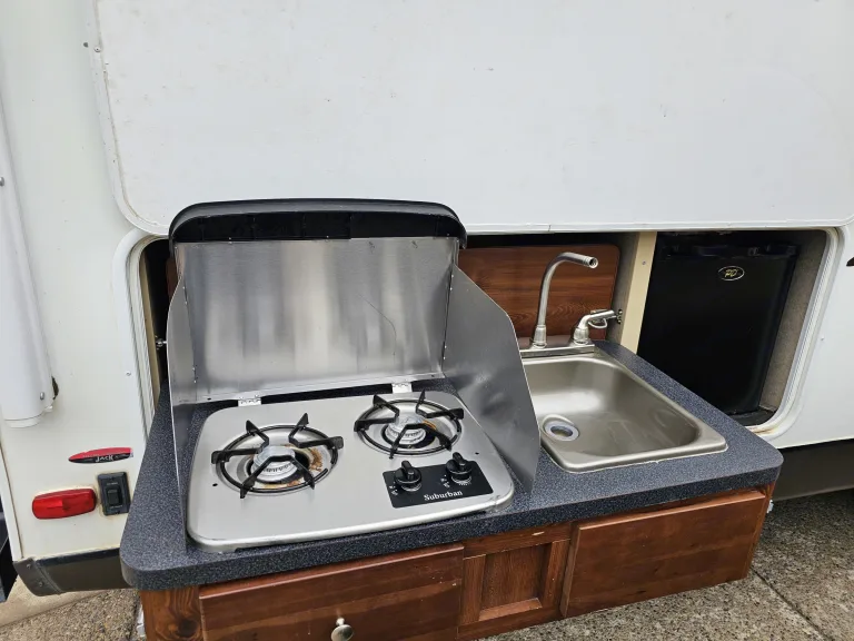 It has a queen bed up front, quad bunks in the back, a fold out sofa bed with a comfortable air mattress, and a fold down table bedOutdoor kitchen with a stove and dual awnings to keep you out of the weather.Located in Fort Saskatchewan but can offer delivery within a reasonable range.I'm new to this so if you have any questions or if there is anything I haven't covered please ask. Thanks!What's includedCan include linens, BBQ, propane, delivery, etc. for a slight extra chargeRecommendationsMessage me with any questions!Other things to noteNo festivals please.