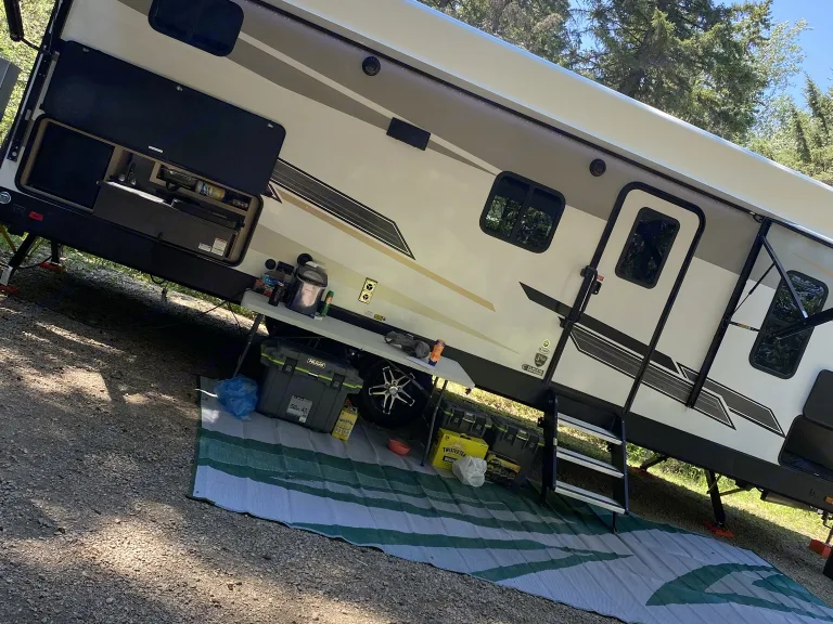 Make magical family memories camping this season with this trailer !This beautiful brand new unit is perfect for family looking to enjoy an outdoor family adventure. Whether you are looking at travelling off the grid to Provincial Parks or a private campground this unit is perfect for your family vacation.There are bunk beds for the kids, kitchen table coverts to a bed, and a king bed with a mattress topper for the grown ups !There is outdoor led lights, and has Bluetooth speaker capabilities for hosting around the trailer. What's includedThis unit comes with with everything you need, keurig for morning coffee, camping chairs, table, dishes, towels, a bumper mounted bbq and outdoor kitchen!Please bring your own bedding and pillows. Other things to notePet friendly!No smoking inside the unit please.No festivals.