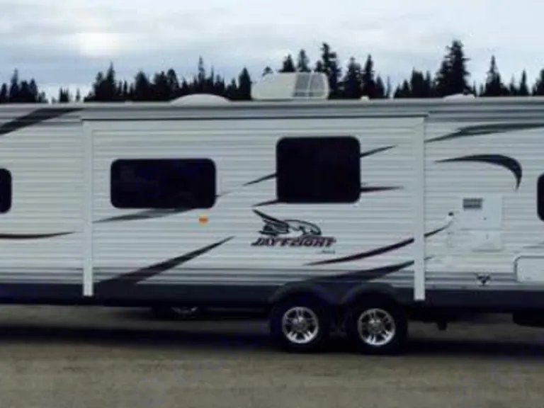 Sleeps 9. 3 bunks in back next to a full bathroom. U shaped dinette that fits the whole family. 52" inch tv that swivels around to the bedroom. Surround sound. Master bedroom has a queen bed. Full kitchen.