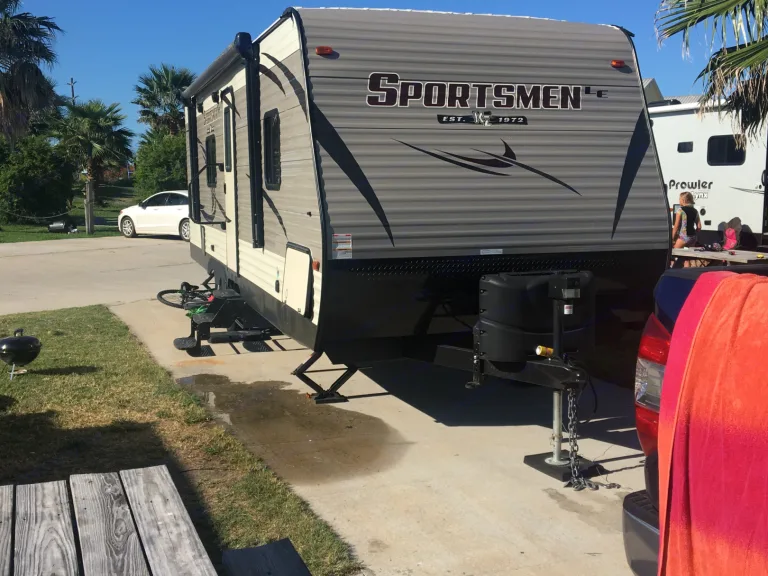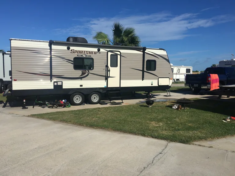 The sportsman is brand new super cozy, has a great awning with LED lights and outdoor speakers. has a full shower and full kitchen.