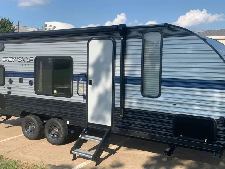 Beautiful 2020 Forest River Gray Wolf Limited!The travel trailer is perfect for a family with kids! Queen bed in the front with a privacy curtain. 2 Oversized bunk beds in the back. Table converts into another bed if you should need more sleeping space.No pet fees, no mileage fees, no propane fees! All you need is included!RV Rental Delivery and Set-Up available.