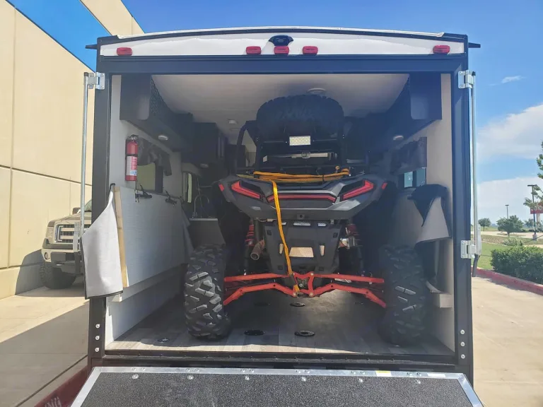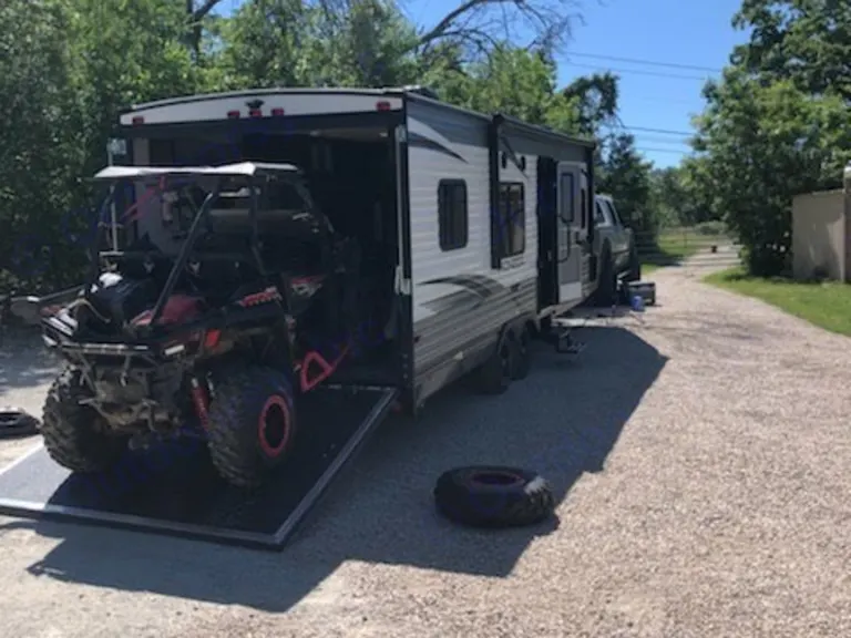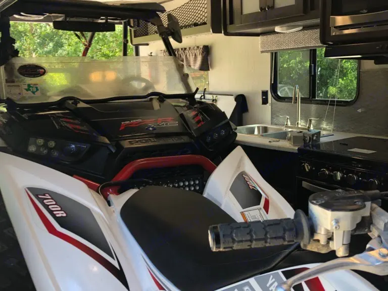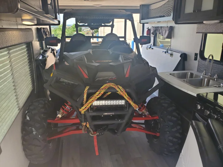 Water hose to wash your toy...Other things to notemy toy hauler can accommodate a Quad and a standard Polaris RZR 900 as well as an XP1000 (one or the other), meaning no alterations to height or width... Just as a courtesy, please let me know what you will be hauling... To make things easier, the camper has keyless entry to make it one less thing in your pocket or to worry about... It also comes with two locks for the rear door... I love dogs and they are definitely welcomed and allowed in the camper, all that is asked is clean up after your furbabies ie. Doggy hair before returning... With that being said... Who is ready to go on an adventure?..