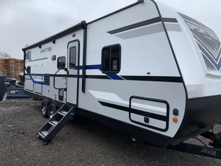 If you ever dreamed of the ultimate camper with all of the amenities wrapped into one half ton towable RV the SportTrek 281 is it! This 34 foot camper with its single super slide is unmistakably larger than it appears. On the outside you will find a beautiful camper that looks as good at the campsite as it does behind your pickup truck...even if its a Chevy or Dodge. The outside kitchen really helps to bring the inside out with its 2 burner cooktop, outdoor mini fridge, and sink to help clean up after dinner. Inside the camper you will find a very well laid out queen size bedroom with its upgraded i-cloud custom mattress and privacy curtains. The heart of the camper is its oversized U-Shaped couch which is great a getting the entire family together at once. The couch also has a recliner at one end and even transforms into a queen size bed on the other. The large double bunks are safe and secure for the kiddos and large enough the uncle. This SportTrek 281 is truly a great layout for the entire family. Did I mention its also easily half ton towable...even for you Ford Eco-boost guys and gals :-)