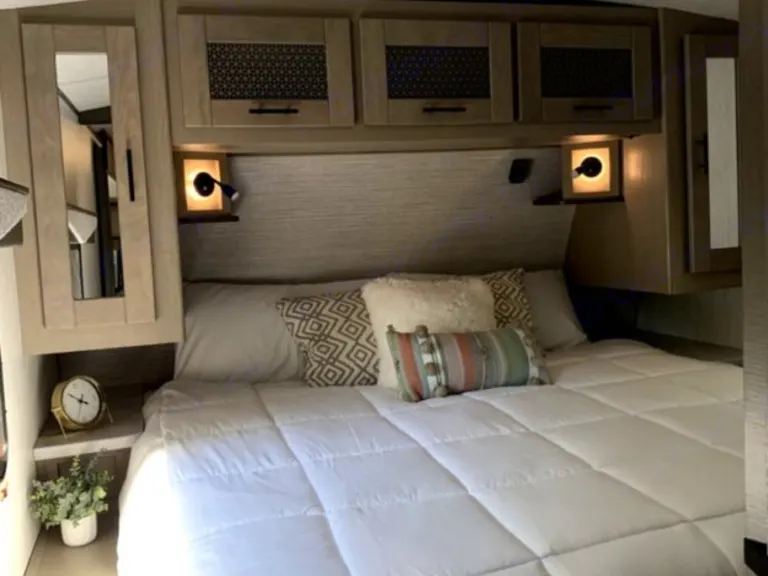 Magnolia is always ready for the road!This brand new trailer features a private bedroom, spacious bathroom and theater style sofas - perfect for your next couple of family adventure. It is modern and cozy and we want it to feel like your home away from home. The indoor/outdoor Bluetooth speakers and lit awning allow you to take the fun outside!Kitchen is fully equipped with a double bowl sink, pull out sprayer, microwave, oven, stove and 10 cu refrigerator. We have also included all the essentials for cooking on your next trip. (Includes pots, pans, plates, cups, silverware and more!) Last but not least, the Keurig coffee machine available to you!