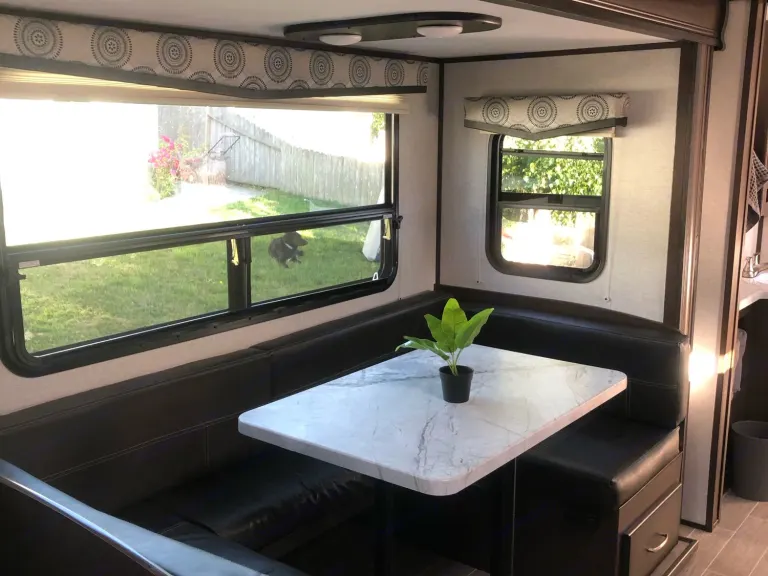 We care about you and your family's safety, that is why we thoroughly clean our trailer prior to your rental, at no extra cost to you. After receiving and prior to renting, the trailer is sanitized from top to bottom. All linens are laundered on the ‘sanitize’ setting, all kitchen supplies are sanitized in the dishwasher and all surfaces are disinfected with EPA-registered disinfectant.
