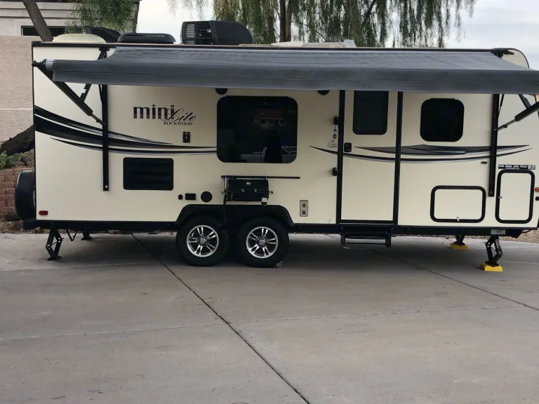 This fully loaded light weight travel travel has all the amenities of home! Trailer has power hitch and there is a weight distribution hitch and anti sway bar to keep it steady behind you. There's a power awning, propane grill, and speakers on the outside, as well as bright LED lights to keep you safe. Inside there is a (murphy) RV queen size bed (with mattress warmer) kitchenette folds down to a bed (easily sleep 2 small kids) as well as 2 bunk beds (tight for adults over 6'). Linens are provided as well as all kitchen utensils, plastic flatware, cups, and plates. There is a 21' television, DVD player and bluetooth radio as well as 2 USB charging stations for your electronics. There is plenty of storage throughout, and all power cables, water hoses, and dump hoses will be included with gloves. There is a fridge, freezer, microwave, and 3 burner range and oven in the kitchen, along with pots and pans.We have kept this unit very clean and well maintained, and we are kid friendly. We allow pets up to 40lbs. If there's something else you would like and don't see mentioned please ask, we use this unit regularly and probably have it!Conveniently located 1 mile from beeline highway on Shea Blvd! For a small fee I will be willing to clean the dump tanks after your trip to save you the hassle! If you don't select to have it done and tank is brought back full you will be charged $200.