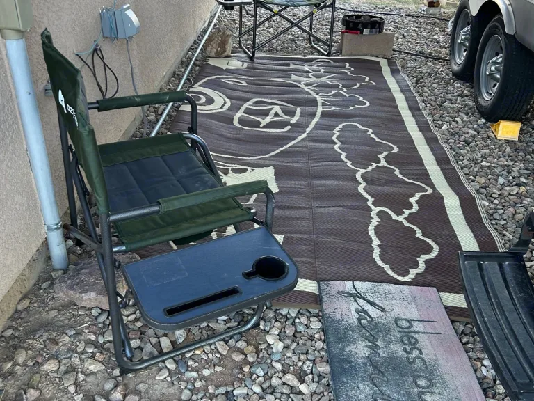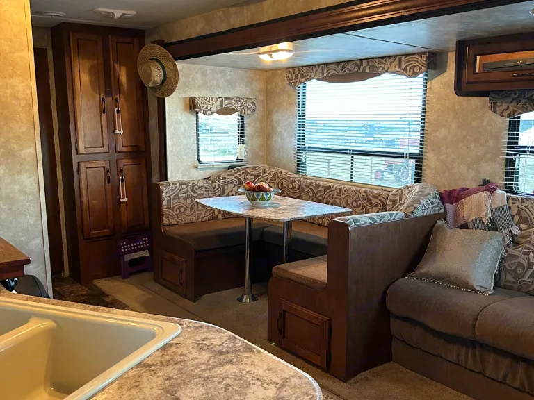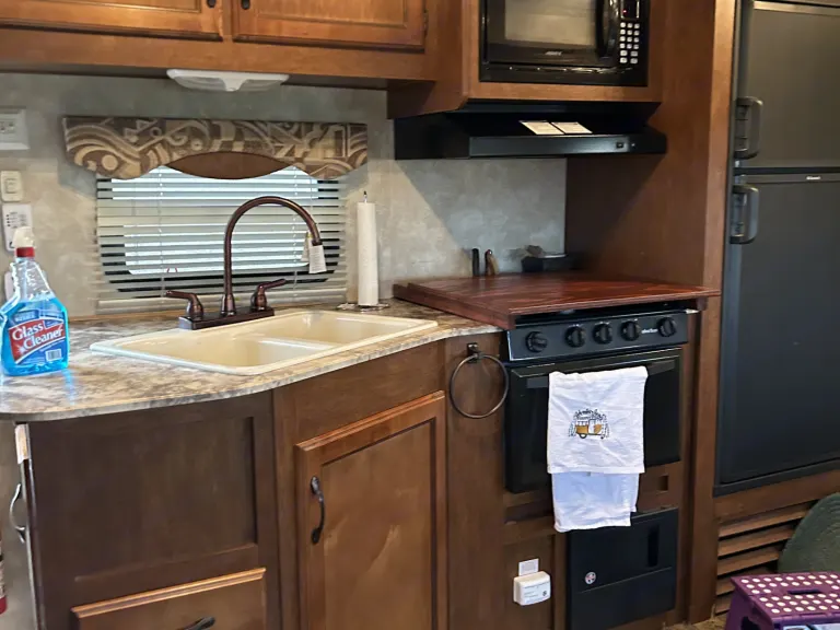 You'll be ready to make any meal at ease!Outdoor Space: You'll find relaxing outside just as enjoyable as the inside with many camping chairs, 1 mini folding side table, 3 tv trays, table covers, two outdoor rugs, and smore roasting sticks, camper pies.*Need additional supplies? Let us know and we'll stock it for you.Towing: