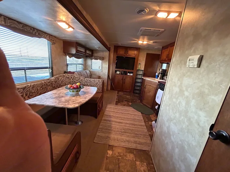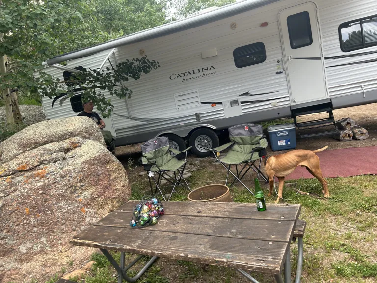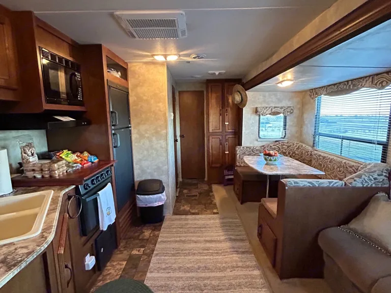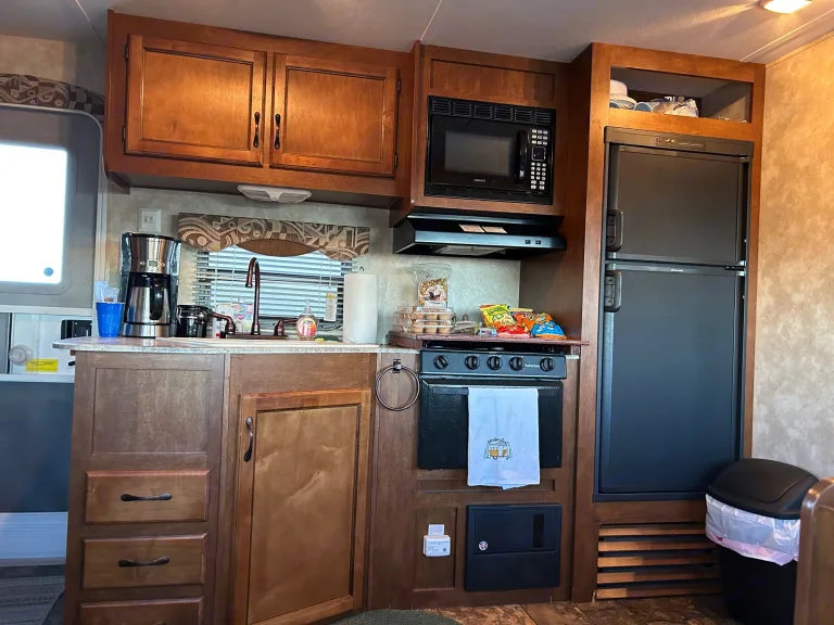 We ask that you do not allow dogs on couch’s/ sofa chairs and beds! If your dog(s) are wet, please keep them outside until they are dry. We will supply the water and food bowl for your fur-baby(s).Groceries- We are happy to do the grocery shopping for you- $100.00 fee plus cost of groceries.You need help making a menu - camping menu. We can plan it for you. - $40.00Smoking: NO Smoking Allowed inside camper.The trailer must be returned in clean condition, without damage. If it is not clean or there is damage not previously noted at possession, cleaning and repair costs will be deducted from your deposit.What's includedEverything you need - Silverware, cooking seasonings, kitchen towels, outdoor tablecloth, dish soap, hand soap, shampoo, soap, bedding, towels, swimming towels, coffee, pot, food processor, cooking utensils, pots and pans, measuring cups and spoons, pitchers, paper products, camping chairs, outdoor rug, outdoor grill, cleaning supplies, vacuum, games…..Other things to noteThere will be a binder with Rules.