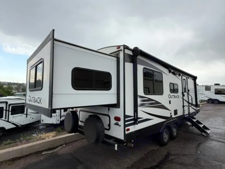 Full bathroom with shower, toilet, sink, and skylightPower awning with LED lightingPower tongue jack for easy hitchingDucted A/C and heat for year-round comfort with hookups.Ample interior cabinets and wardrobe space40-gallon fresh water tank | 30-gallon black tank | 40-gallon gray tankThis travel trailer combines lightweight towing with heavy-duty functionality. Whether you're headed to the lake, mountains, or the desert, the Keystone Outback 240URS is built to bring your toys — and your home comforts — along for the ride.Dry Weight: ~5,500 lbs | Gvwr: ~7,500 lbs | Hitch Weight: ~590 lbs