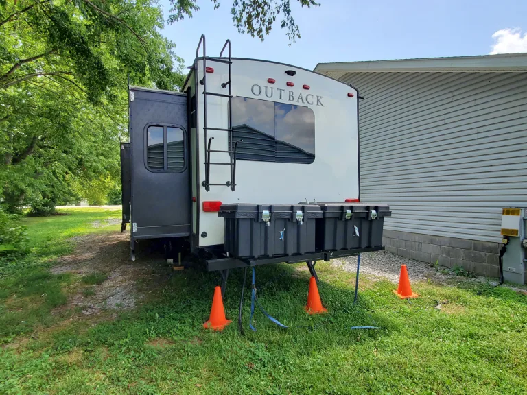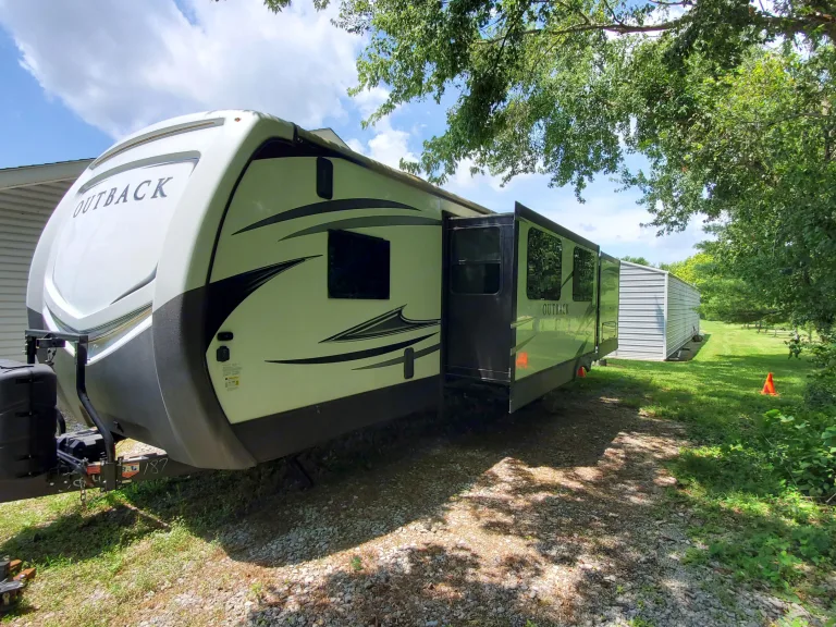 Other things to noteSleeps 6. RV King in Master, dinette converts to a bed that can sleep two, and Top and bottom bunks. (top max at 120).Key transfer expectations: Will take up to 45 minutes at pickup to inspect, walk through and learn how to operate. Will take up to 30 minutes to inspect on return.An Outdoorsy provided insurance policy is required for all rentals. Keys will not be transferred if insurance hasn't been purchased/approved through Outdoorsy system.Tow Requirements: A 3/4 ton (I.e. a 250 or 2500) is required to tow. If renter does not have correct towing equipment, reservation will be cancelled at renters expense with no refunds, or delivery required (of available for delivery).Delivery/Setup fee is $4.00/mi with a minimum of $200.Tanks: All tanks must be dumped or a $150 dump fee will be charged.Pets: No cats. No large dogs. Dogs on per-case basis, with a refundable $300 pet deposit and non-refundable $100 deep-cleaning fee. Renter responsible for any additional major damage due to pets.No festivals. NO SMOKING.Toy-hauler space must be discussed prior to rental to ensure correct size requirements.Do not walk on roof. Awning must not be used.RV must be returned clean. Swept, empty/clean fridge, empty trash, counters wiped, and bathroom wiped down. A variable cleaning fee will be charged up to $300 for standard cleaning and up to $600 if a professional deep clean is necessary.