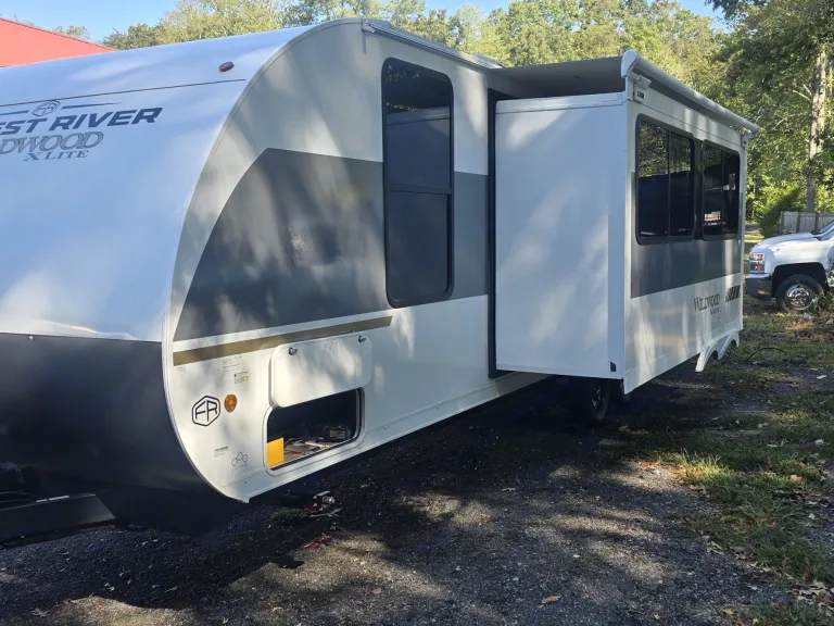 Experience the comfort of home on the road with our 2025 Forest River Wildwood X-Lite 28Vbxlx. Spacious, modern, and family-friendly, this travel trailer is built for unforgettable camping trips, weekend getaways, or long adventures.Inside, you’ll find plenty of room to relax and sleep up to 8 guests. The private Versa-King bedroom gives parents or couples a cozy retreat, while the separate bunk room is perfect for kids or extra guests. A convertible dinette and sofa add even more flexibility.Entertainment is covered with a 40-inch smart TV and Bluetooth speakers, making it easy to enjoy a movie night or stream your favorite music. The fully equipped kitchen includes a stove, oven, microwave, refrigerator, and sink—making meals simple and convenient.Step outside and enjoy the powered awning with LED lighting and outdoor speakers. Whether you’re grilling, relaxing, or just enjoying fresh air, the outdoor setup makes evenings at camp even better.Your rental includes everything you need to get started: fresh water and sewer hoses, surge protector, power cord, leveling blocks, first aid kit, fire extinguisher, battery backup, RV toilet paper, hand soap, and paper towels. Just bring your own bedding, cookware, and towels.Upon pickup or delivery, we’ll walk you through how everything works so you feel confident before hitting the road. Choose to tow it yourself (~6,200 lbs dry) or let us deliver and set it up for you within 100 miles of Stafford, VA.This trailer is clean, easy to use, and designed to make your trip stress-free from start to finish.What's included• IncludedWater & sewer hoses + regulatorSurge protector & power cordLeveling blocksBattery backup (phones/tablets)First aid kitRV toilet paperBasic toolsFire extinguisherWi-Fi booster (amplifies campground/hotspot signal)• Not IncludedKitchenware (cups, plates, pots, pans, utensils)Cleaning supplies (broom, trash bags)Bedding & pillows (bring your own linens/blankets)