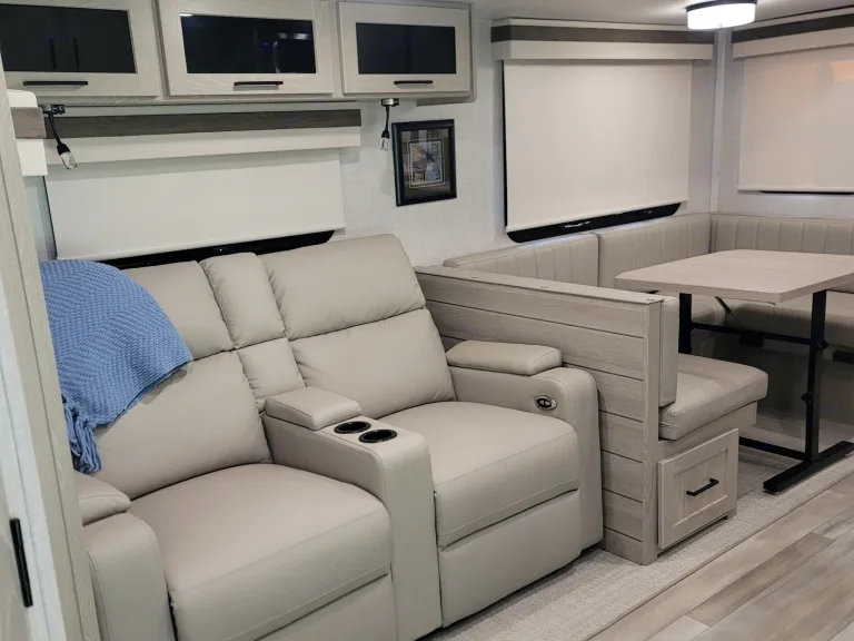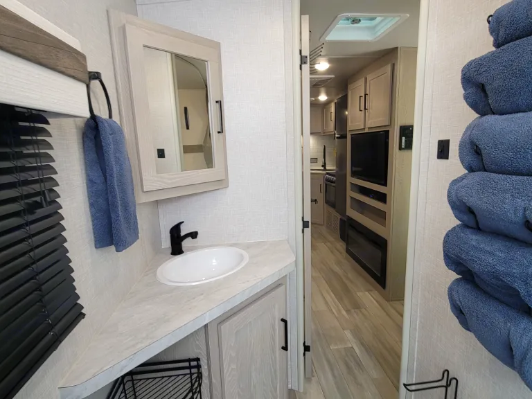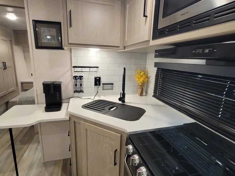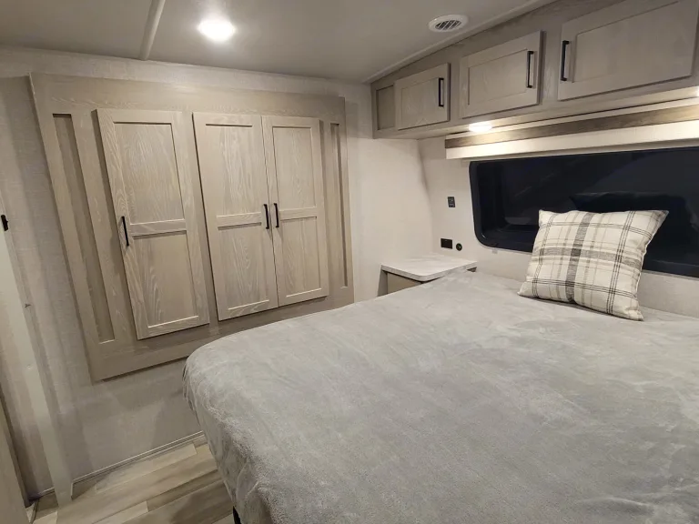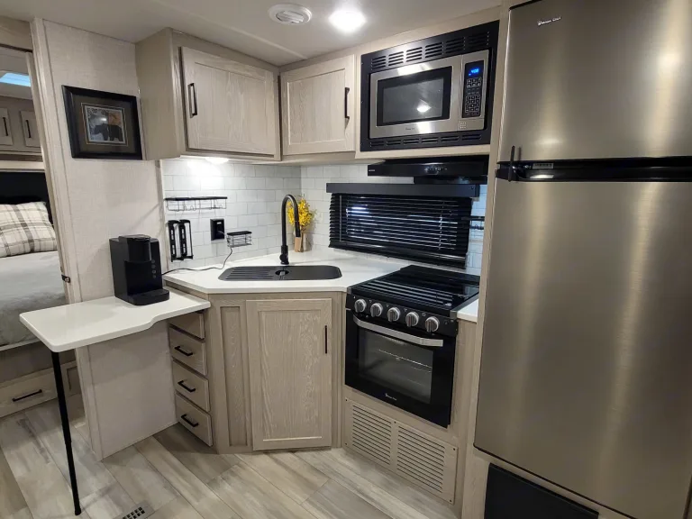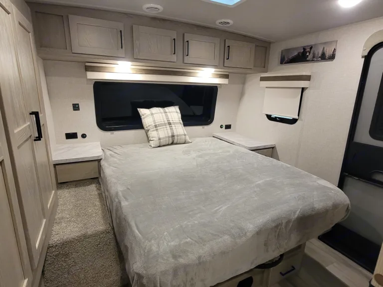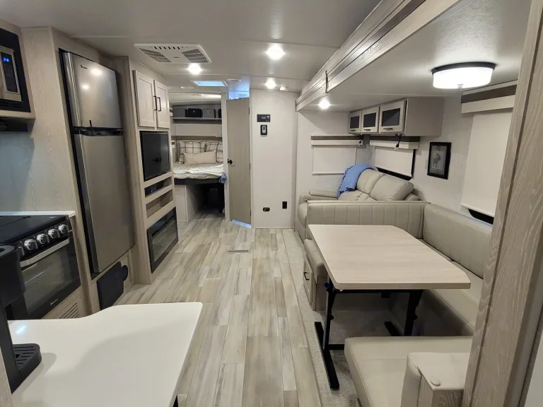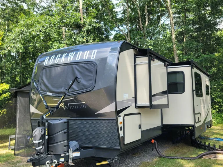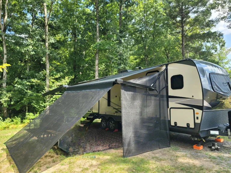 Spacious-High Quality Couples camper-Outdoor Kitchen I Smoke & Pet freeWith two slide outs & two awnings, it provides ample indoor & outdoor camp space. It's immaculately clean & set up with everything you need for the perfect cozy camping getaway. Set up for a couple, the queen bedroom is roomy, with a slide out wardrobe and a sliding door, making the bedroom private. There is also a converted bunk area with a privacy curtain for an additional guest.Bring your clothes, personal items, & food! We supply the rest! If you need anything additional, just ask, we probably have it!Large fridge with freezer, stove/oven, microwave, TV, Keurig coffee maker with coffee, sugar, & creamer provided. Cookware, plates, bowls, cups, utensils, roasting sticks, BBQ utensils provided.The outdoor kitchen includes a small fridge, 2 burner stove top, griddle, & BBQ utensils.All bedding, towels, & linens are provided. Toilet paper, tissues, paper towels, trash bags, hand soap, dish soap, shampoo, conditioner, body wash provided.Additional amenities include: