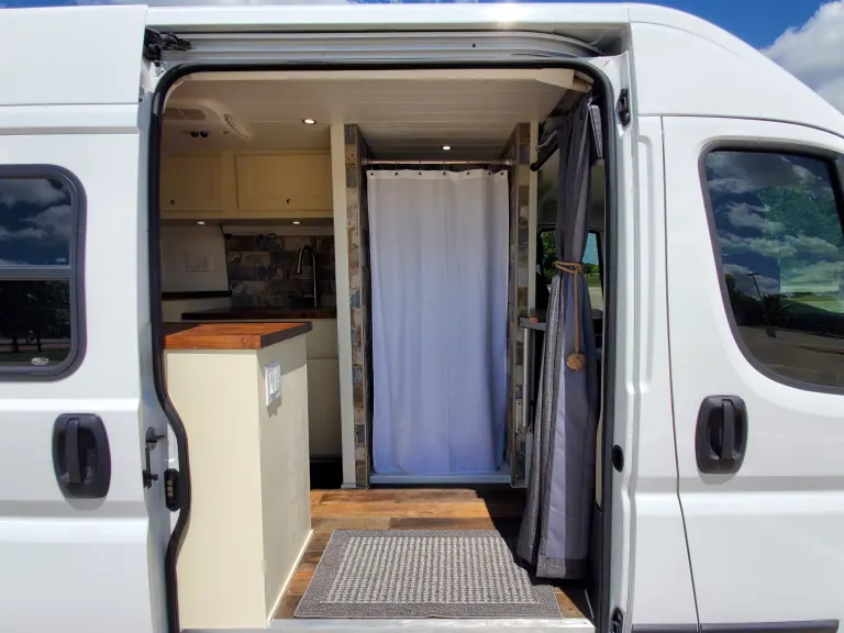 Beautifully built custom camper van built on a 2019 Ram Promaster van chassis. The van features tile shower, twin bed, plenty of storage, solar, lithium batteries, microwave/convection oven, swivel passenger seat and a Lagun Table.This van is jam-packed with high-quality material and components sure enough to make your camping trip one of adventure and comfortability.