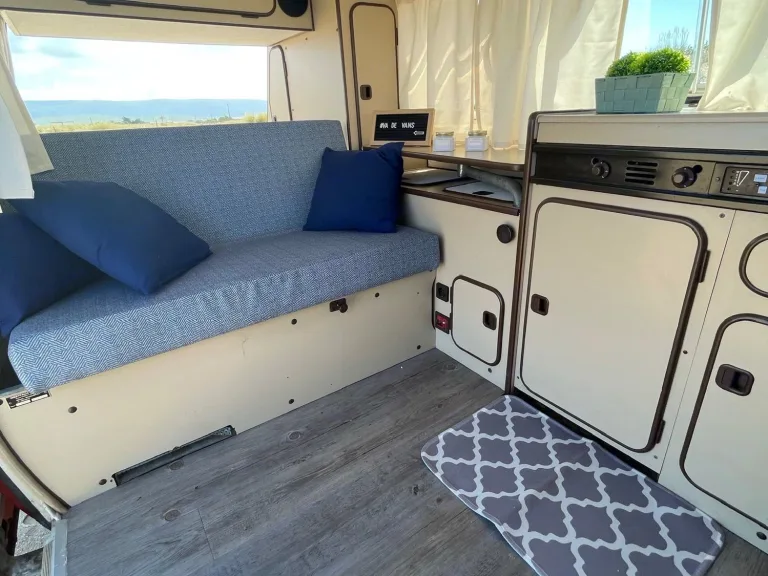 Rent our lovely oxford Volkswagen t3 completely restore and equipped with the support of the @va_de_vans teamOxford is a t3 classic vans with Diesel engine and with capacity for four people to drive and sleep.Oxford is equipped with navigator onboard computer, two beds(95 and 110 cm), gas fridge, gas interior and exterior kitchen, two auxiliary batteries, electrical converter, swivel seats, 50l of potable water tank and 40l or waste liquid tank exterior shower, 4 sets of crockery, welcome package, two sets of sheets.Please note that Oxford due to his age do not count with A/C and his cruising speed is 90-100kmh. It may seems inconvenient but you will realice it is not.Enjoy a remarkable holidays in the south of Spain or Portugal with ours classic campersWhat's includedEl alquiler incluye juego de cama, equipamiento deportivo, kit de bienvenidaRecommendationsEn Va De Vans recomendamos varias rutas para las que damos consejos y recomendaciones. Nuestras rutas favoritas desde sevilla son malaga, cadiz y el sur de Portugal (Algarbe)Other things to noteViajar en una vw t3 de los ochenta es una experiencia única, pero recuerda que en aquella época no se viajaba a 100kmh y que los vehículos carecen de aire acondicionado. Puede parecer imprescindible pero viajar a 100kmh con el aire entrando por las ventana te encantará.
