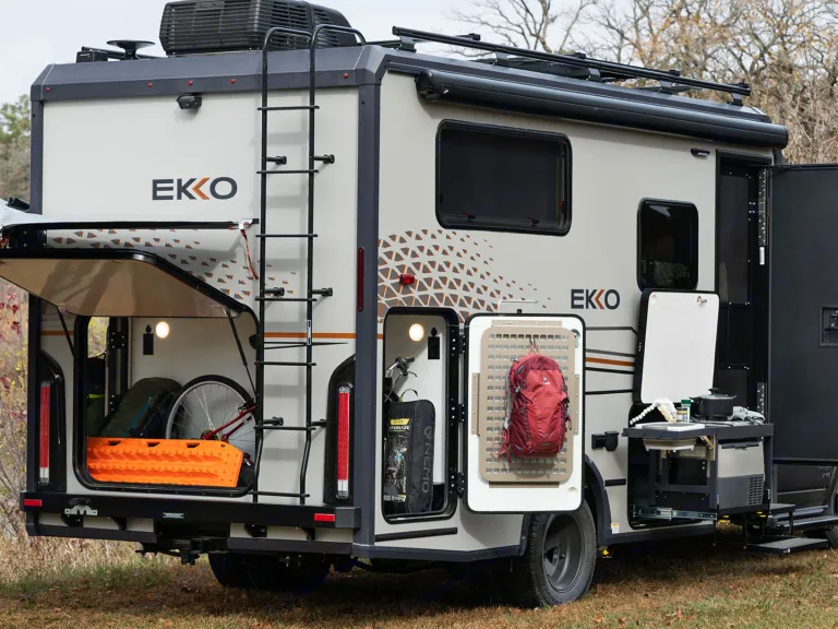 The all-new Winnebago® Ekko combines the efficiency of a camper van, the added capacity of a Class C coach, and the enhanced capability of AWD to create not just a new model, but an entirely new type of RV.It's the perfect adventure RV for those that want the comfort of a large RV in a package that size and drivability of a van. It even had a secure garage to store all your outdoor gear.From the massive heated pass-through gear garage – large enough to store bicycles, inflatable kayaks and other outdoor gear – to the large living, sleeping, and cooking space, the Ekko is sure to become your favorite adventure vehicle.We've configured it to be ready for long term boondocking and off the grid camping. Packed with solar and lithium batteries and a built-in backup generator, you'll never run out of power. Run the included AC when things are hot without worrying about power. The Ekko features a cassette waste system that allows you to dump at any standard toilet and not have to worry about being at an RV park and finding a dump station. It also has an outdoor shower and an full outdoor kitchen that expands your cooking and showering possibilities. The Ekko uses standard propane tanks making it easy to refill at at gas station or hardware store.Last by not least, it's packed with an advanced all-wheel drive system for all season camping and exploring the off-beaten path.Oh, and one more thing. It's got a huge water tank and instant hot water for long showers. No more military style showers. Adventure in comfort!This vehicle is scheduled to be delivered in June. Be the rest to rent a brand new RV!What's includedWe include everything you need for a well rounded adventure. Fresh linens and cozy comforter. Pair of compact camping chairs. Complete cooking and dining set to cook any meal for 4 people. Emergency recover gear in the event you get stuck including traction pads, shovels and road-side emergency repair kit. RecommendationsThis is an all-season adventure vehicle and you're ready for snow covered roads and the occasional excursions on the beach. It also the perfect vehicle for those who don't want to stay at RV sites or popular camping sites as it's fully ready for off-grid camping. Other things to note- No towing is allowed