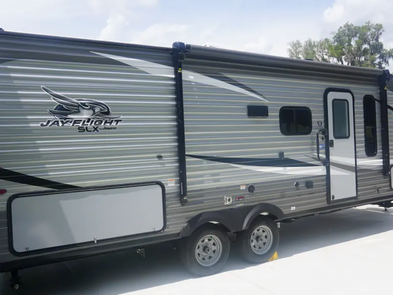 Welcome to our beautiful Brand NEW 2021 Jayco Jay Flight 27ft bunkhouse.Perfect for a family vacation!- Sleeps 5 comfortably. One queen bed up front with overhead and side storage, two full size bunkbeds and the dinette folds down for extra sleeping space.- Large bathroom with shower and sink.- Indoor kitchen with refrigerator, stove, oven, microwave oven, coffee maker, toaster, plates/bowls, cooking utensils, silverware, coffee cups, pots/pans.- Outdoor kitchen with mini fridge perfect for beers.- Power awning. LED interior and exterior lights.- Surround sound indoor and outdoor speakers with iRV stereo system.- Outdoor shower.Please send us your questions and we will be happy to answer them promptly.**** ¡Hablamos Español! ****Other things to note- A strict NO smoking or vaping policy inside the trailer. If the trailer smells of smoke, you forfeit your entire security deposit, no exceptions.
